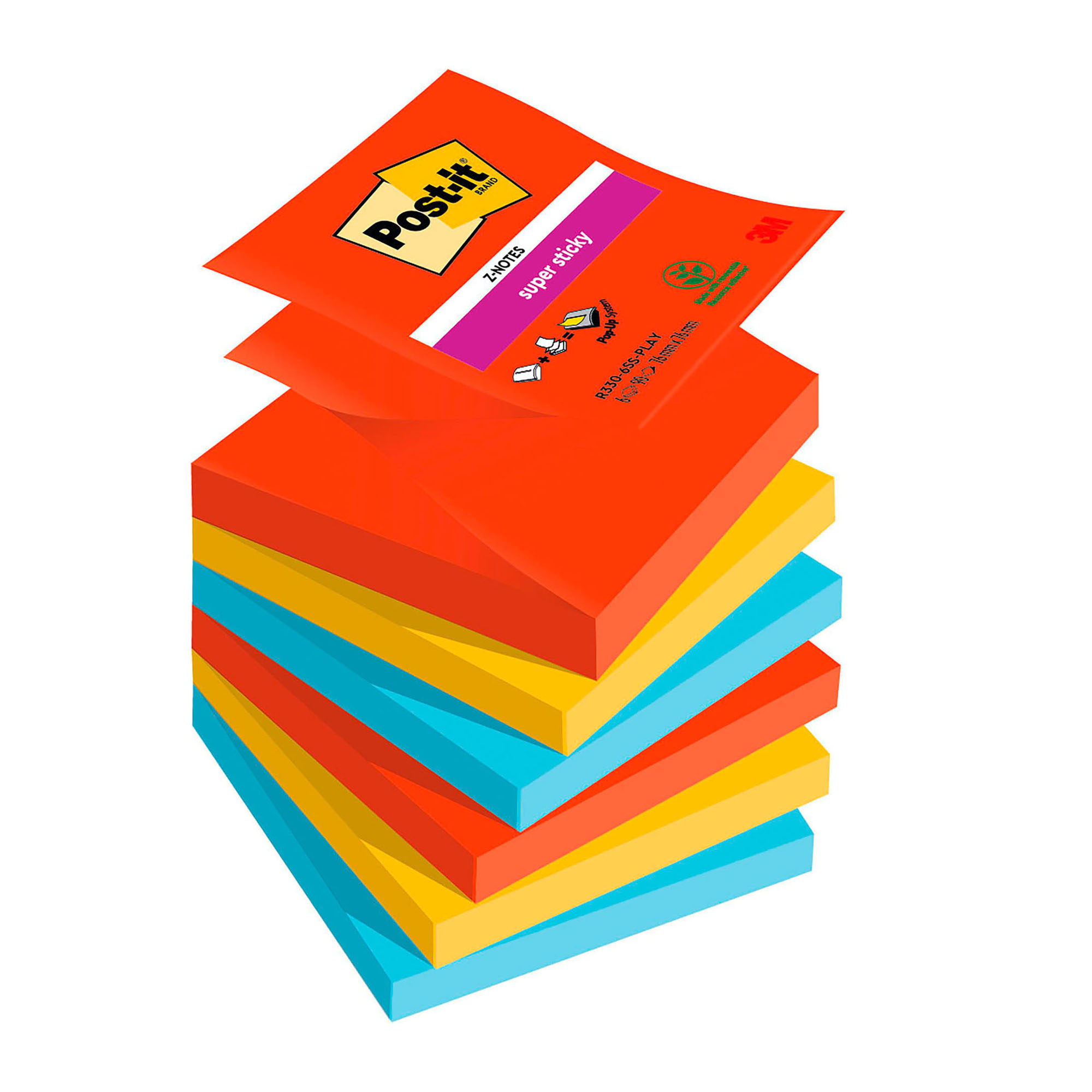 Ricariche Post-it Super Sticky a Z Playful 76 x 76 mm 6 unità da 90 fogli