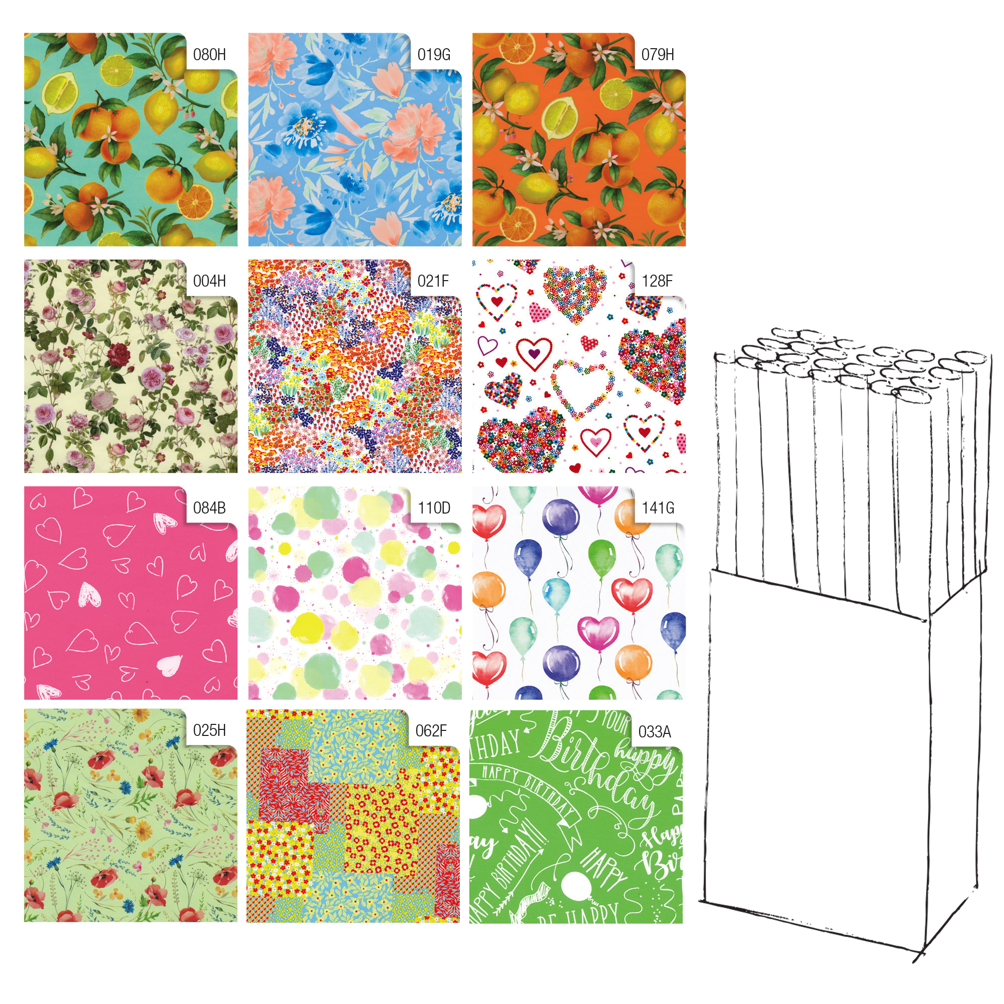 Rotolo carta patinata da 60/65gr. F.to 70x200cm in fantasie assortite.