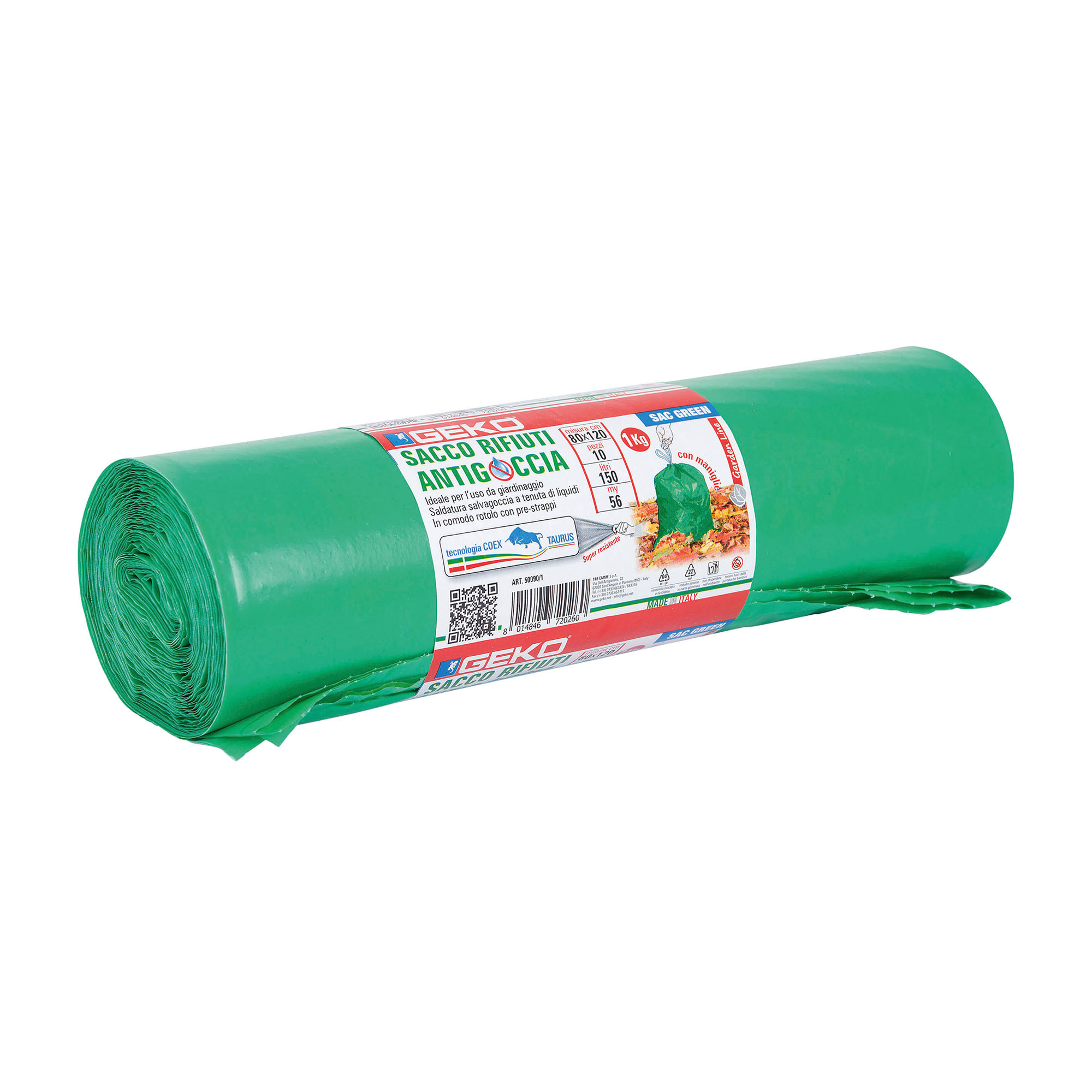 Sacco professionale LDPE per rifiuti da giardino verde in rotolo con laccio di chiusura