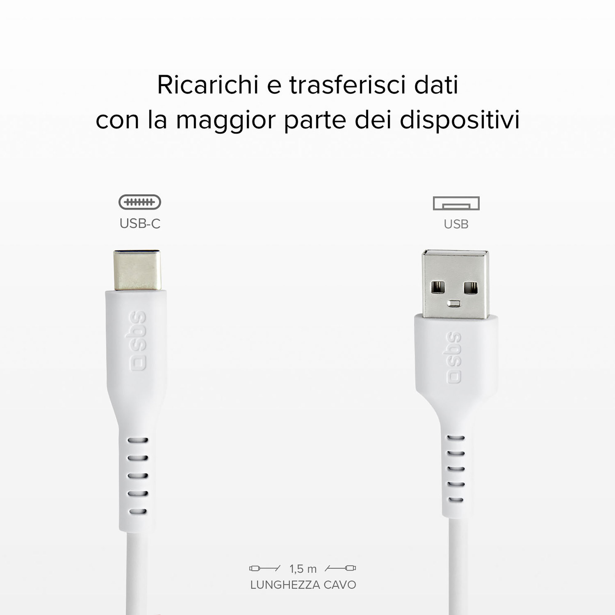 Detailled descriptionCavo dati USB 2.0 a Type-C , lunghezza 1,5 m colore biancoPermette di collegare smartphone o cellulare alla porta USB del computerUtilizzabile sia per la ricarica del dispositivo che per il trasferimento di datiFunzioni incluse: ricarica, sincronizzazione, trasferimento di musica e immaginiCaratteristiche:Consente il trasferimento di dati, immagini e videoSupporta la funzione di ricaricaNon richiede installazione
