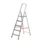 Sulla scala casalinga Gierre Scalamia AL150 è possibile aggiungere una comoda cover portautensili disponibile come accessorio (rif: D4032). Due corde antiapertura conferiscono maggiore stabilità, insieme ai piedini antiscivolo zigrinati. Il gradino zigrinato da 81 mm è fissato con un rivetto passante, inoltre è dotata anche di una copertura esterna del gradino antitaglio.