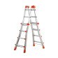 Scala multifunzione telescopica "PEPPina" Gierre in alluminio, 4+4 pioli, permette di raggiungere diverse altezze di lavoro e può essere usata in tre configurazioni: come scala a portafoglio / doppia, oppure zoppa (quando c'è un dislivello) oppure tutta estesa (configurazione singola) con l'aggiunta di barra stabilizzatrice in conformità con la norma EN131-4.