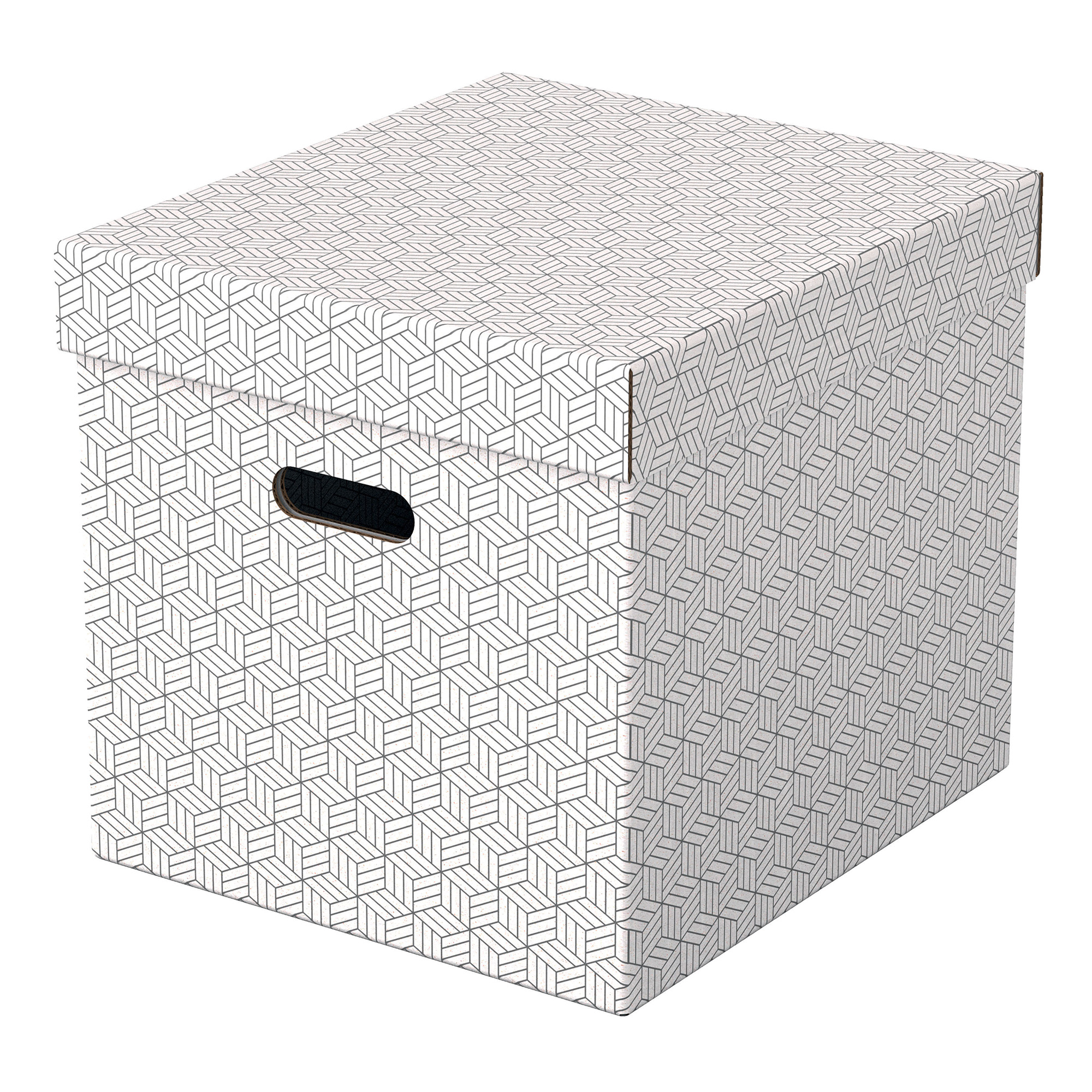 • In set di tre scatole della stessa dimensione da utilizzare da sole, da riporre su scaffali per tenere in ordine e rendere facilmente reperibili oggetti come documenti, libri, giocattoli • Ogni scatola e dotata di 2 maniglie per il trasporto, i lati si ripiegano su se stessi durante l’assemblaggio per una maggiore resistenza, assicurando che le scatole rimangano robuste e proteggano il contenuto • Realizzate in robusto cartone ondulato riciclato al 100% e riciclabile al 100%, certificato FSC, con superficie lavabile rifinita con un design geometrico a due colori • Modello Cubo dimenesioni L x P x H in cm 32 x 36,5 x ,31,5.