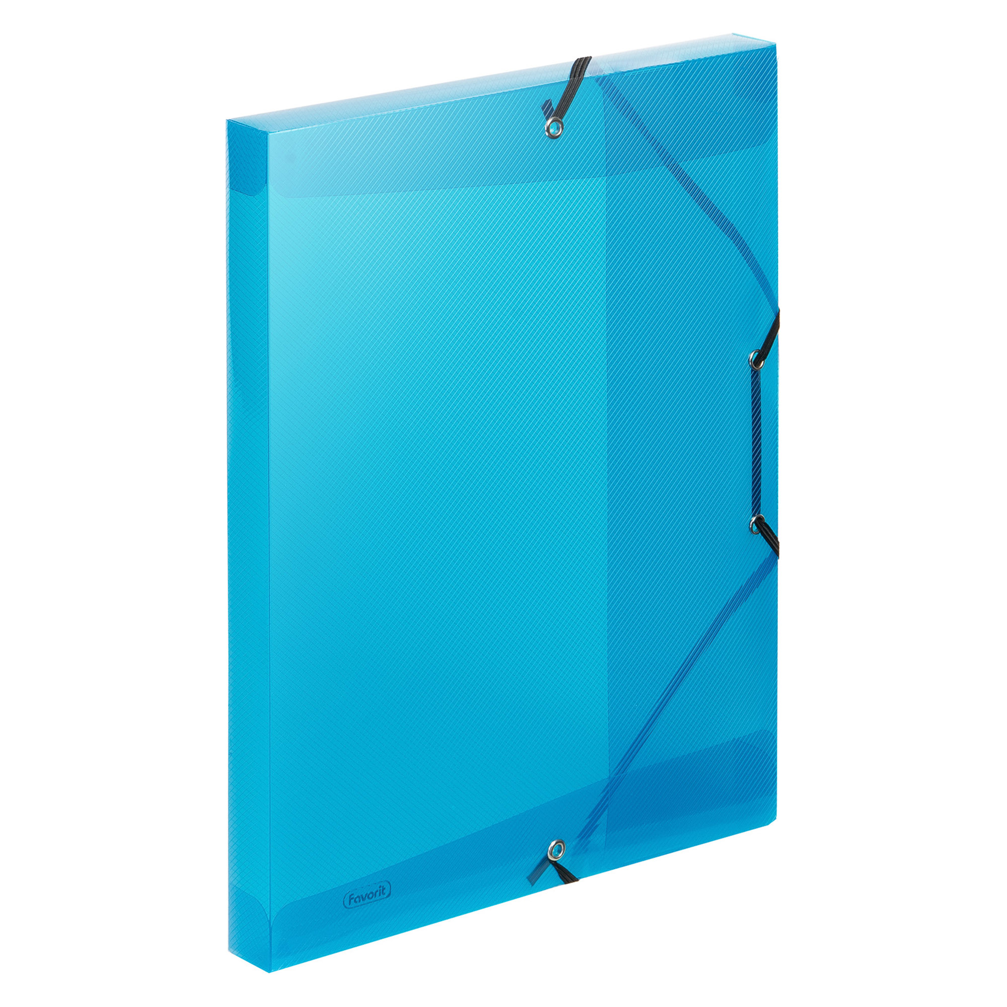 Detailled descriptionCartelle 3 lembi con elastico Lumina realizzate in polipropilene trasparente colorato con speciale finitura rigata.Chiusura con elastico piatto di colore nero.Disponibili in 5 colori: arancio, fucsia, verde, azzurro e neutro.