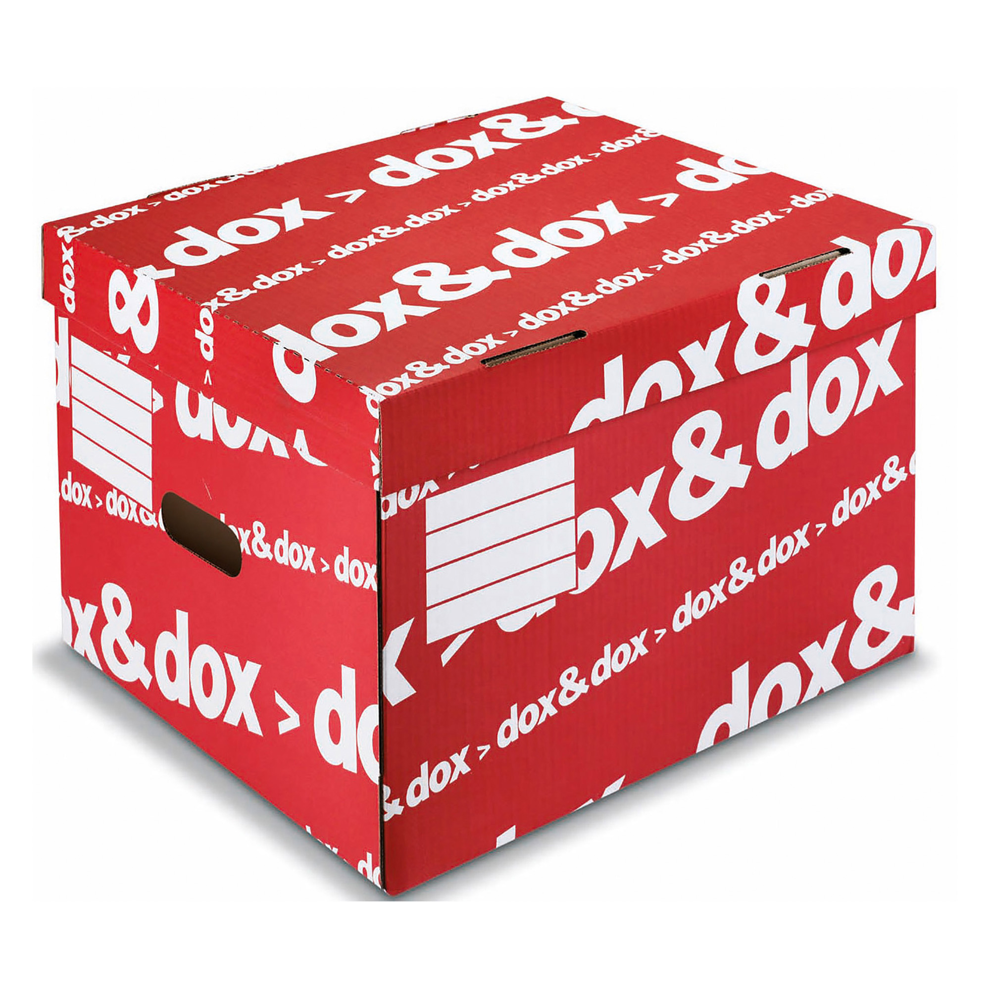 Contenitori per archivio realizzati in robusto cartone stampato, con ampio spazio per la descrizione del contenuto.