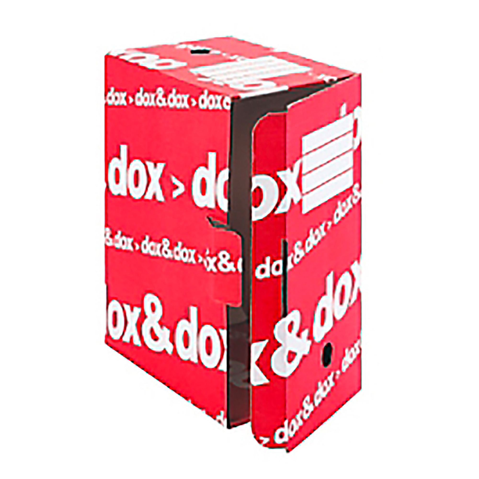 Contenitori per archivio realizzati in robusto cartone stampato, con ampio spazio per la descrizione del contenuto.