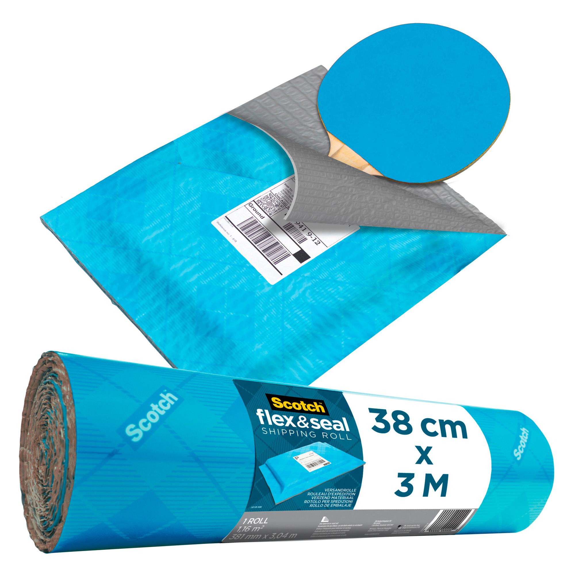 Scotch Flex & Seal Shipping Roll has a unique three-layer construction making it a durable, water-resistant and cushioned packaging solution. It sticks securely to itself but not your item, just press firmly for a guaranteed seal.