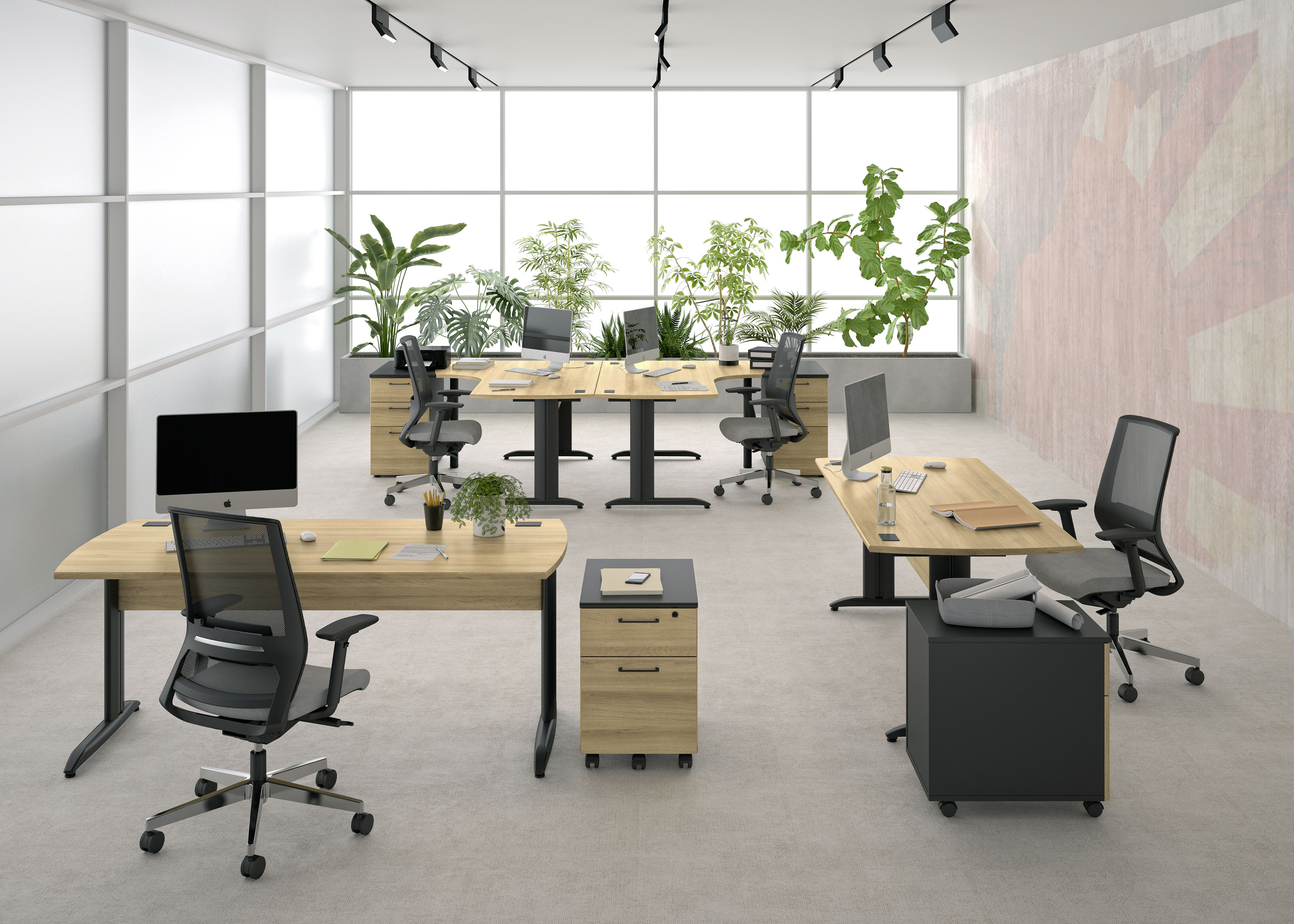 La gamma Quarta Plus è una gamma completa che offre scrivanie con gambe pannellate o metalliche, cassettiere e soluzioni di archiviazione per adattarsi a ogni esigenza. Disponibile in diversi colori nella versione bicolore, è perfetta per l'arredamento di uffici collettivi o singoli.