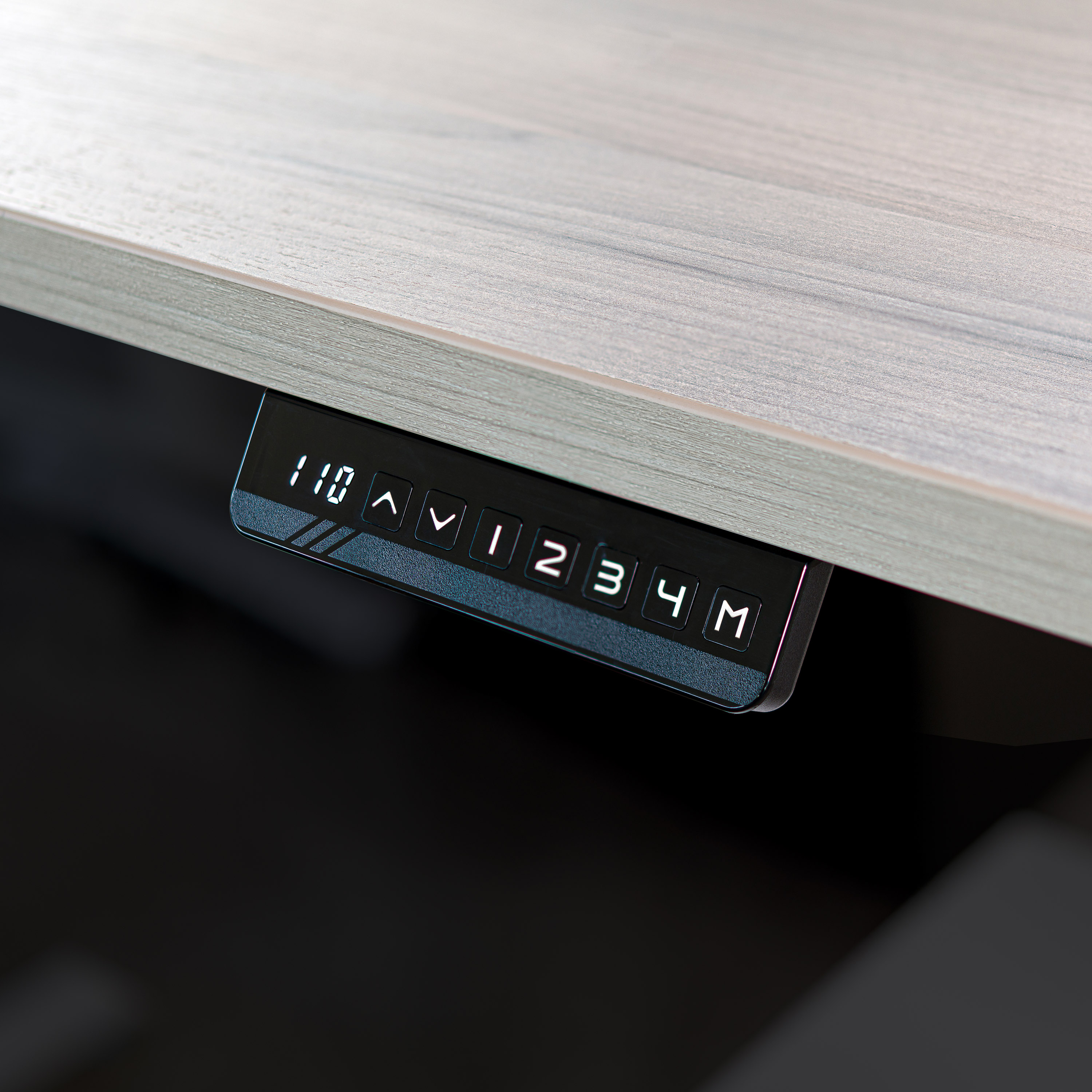 Manopola di comando elettrica con memoria per 4 posizioni, da posizionare al montaggio, a destra o a sinistra nella parte anteriore del piano.
