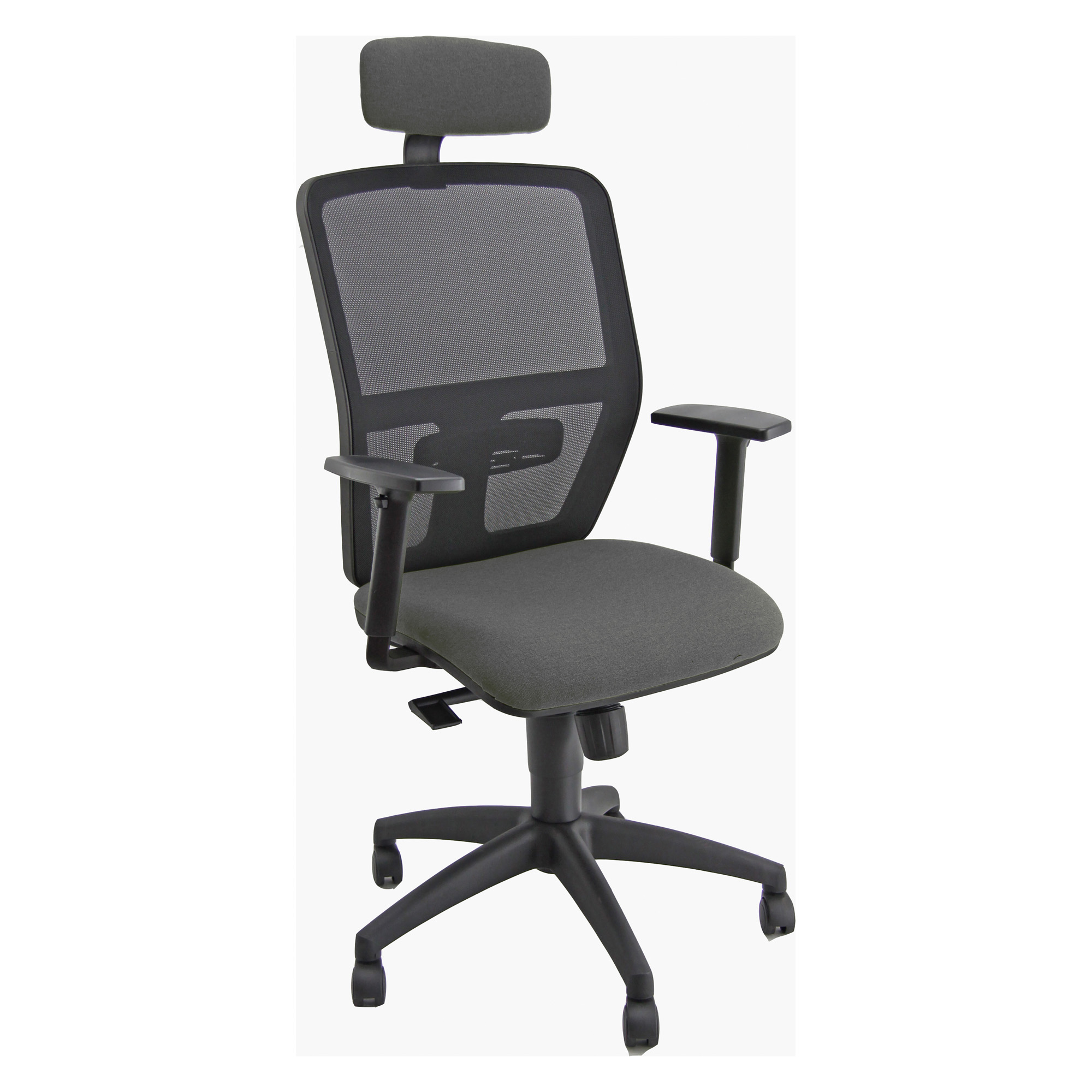 Supporto lombare regolabile - poggiatesta imbottito. Elevazione a gas. Meccanismo synchro antishock a contatto permanente