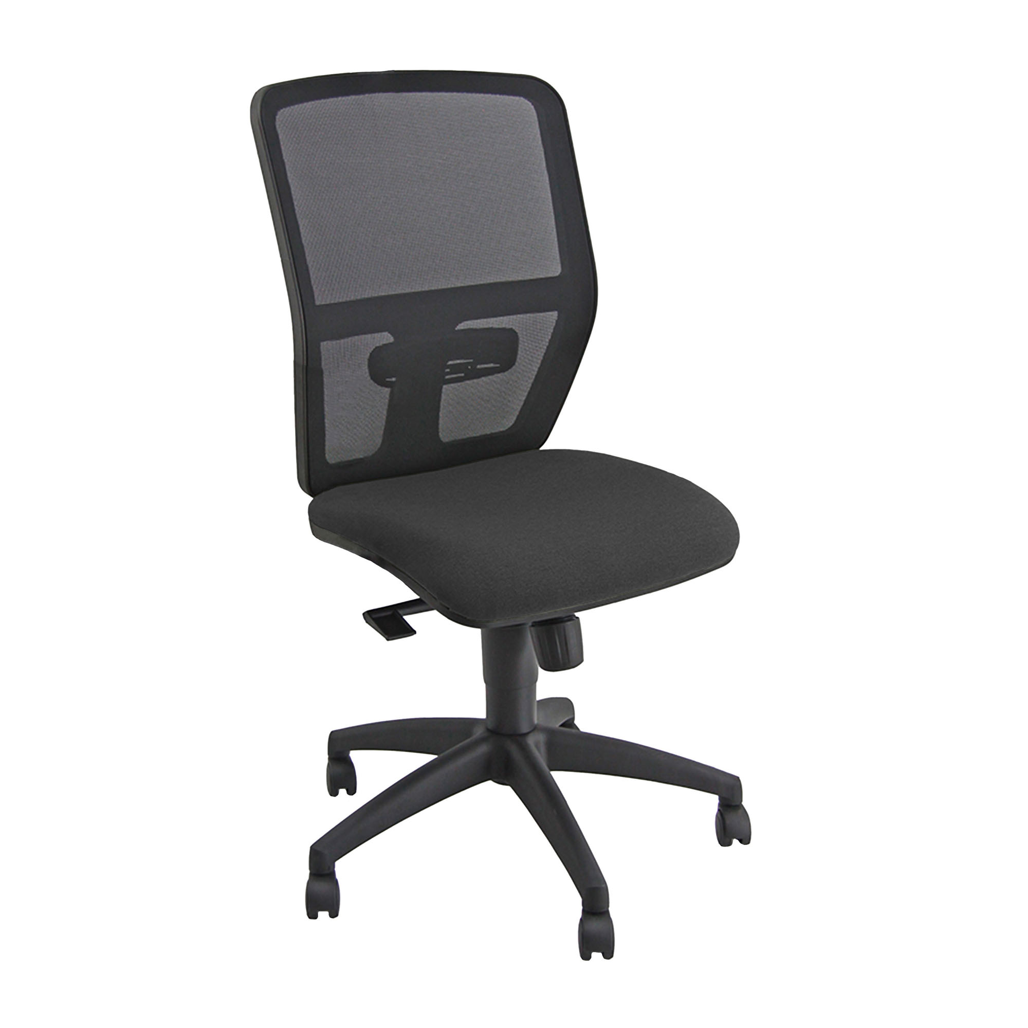 Sedia girevole Operativa con schienale in rete Supporto lombare regolabile. Elevazione a gas. Meccanismo synchro antishock a contatto permanente Altezza Totale: 106 - 118 cm; Altezza Seduta: 43-55 cm; Altezza Schienale: 61 cm; Profondità seduta: 46 cm; Larghezza Seduta: 51 cm; Larghezza Schienale: 51 cm; Braccioli: opzionali da acquistare sepatamente 1D regalabili in altezza colore nero codice 741146.
