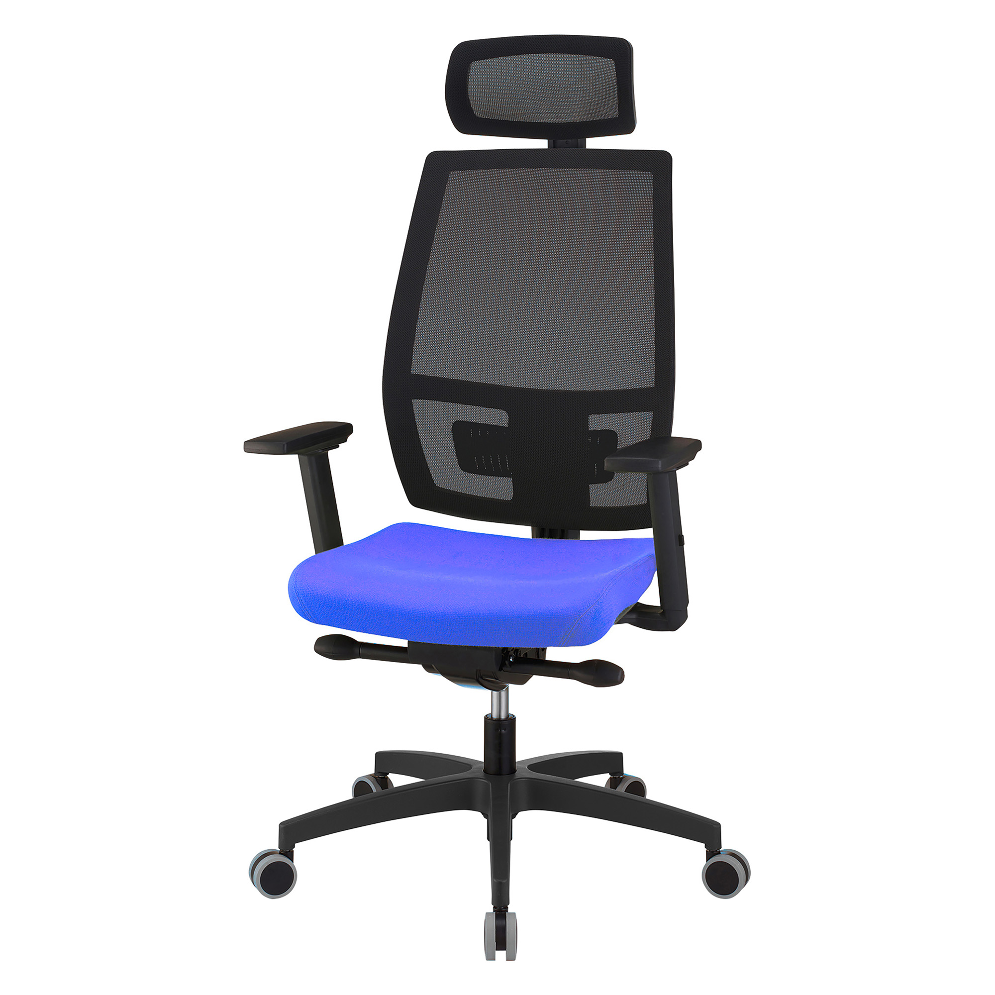 Sedia girevole dotata di poggiatesta SemiDirezionale. Ergonomica con schienale in rete UP-DOWN e Supporto lombare. Elevazione a gas. Meccanismo synchro con 4 blocchi antishock a contatto permanente con sedile traslabile. Altezza Totale: 124-135 cm; Altezza Seduta: 42-54 cm; Altezza Schienale: 60 cm; Profondità seduta: 49 cm; Larghezza Seduta: 51 cm; Larghezza Schienale: 48 cm; Braccioli: opzionali.