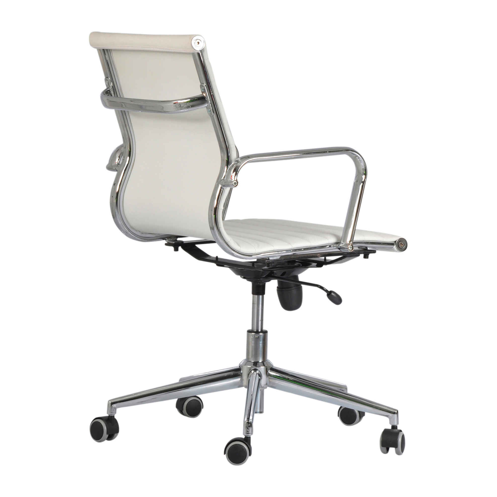 verniciato nero inclusi. DIMENSIONI: schienale alto 64 cm; schienale basso 44 cm; largh schienale 46 cm; largh seduta 56 cm x prof 47 cm; alt regolabile da 46 a 56 cm, alt tot vers schienale alto da 108 a 118 cm, ruote autofrenanti Ø 50 mm, Ø base 70 cm.