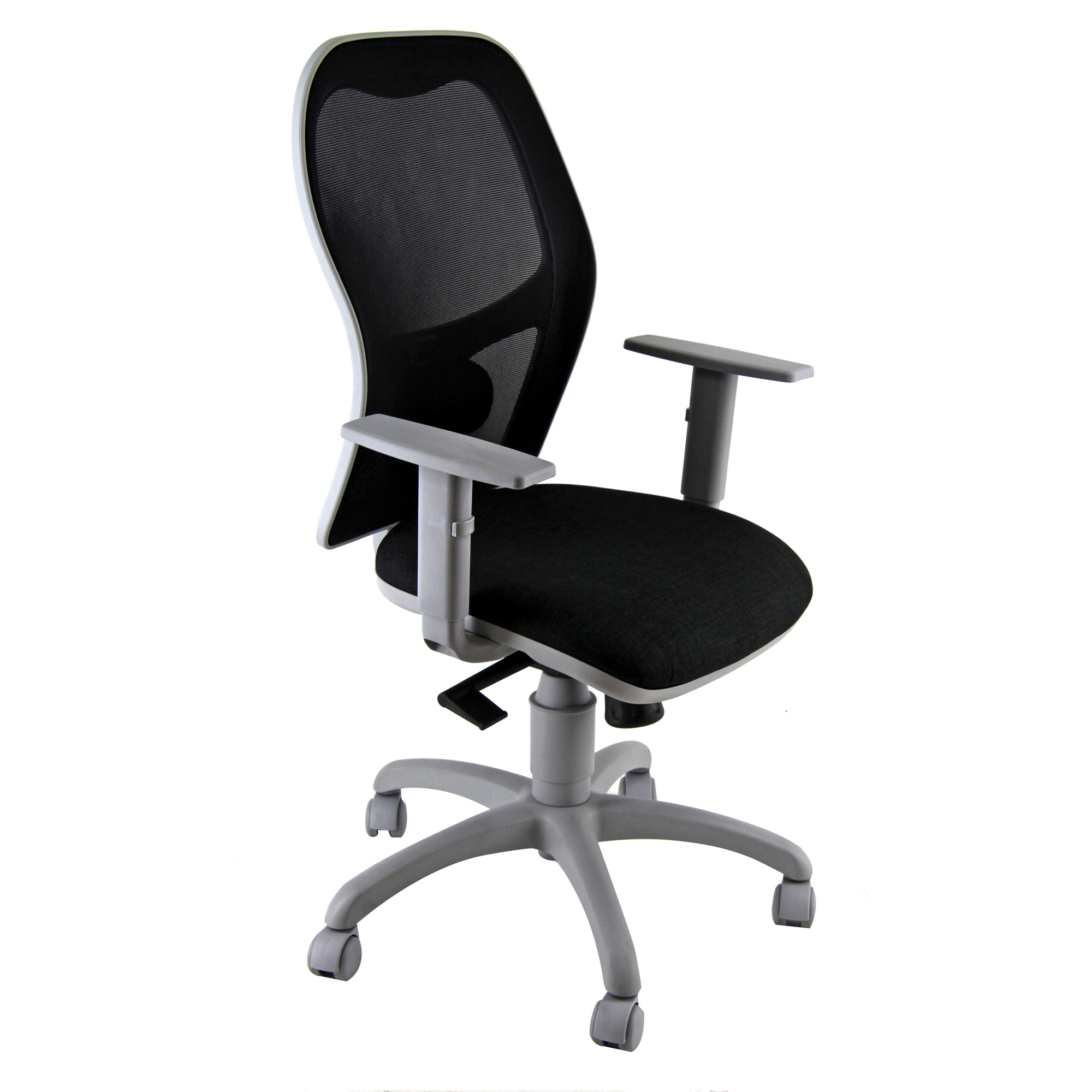 Seduta operativa girevole - elevazione a gas - meccanismo Syncro - 4 blocchi anti shock - meccanismo a contatto permanente - schienale con supporto lombare regolabile. Completa di braccioli regolabili. Rivestimento in tessuto "ECO-Eco" 100% polipropilene. Alt.tot: 102-113cm; Prof.tot: 68cm; Alt. schienale: 60cm; Largh.schienale: 48cm; Largh. sedile: 51cm; Prof. sedile: 46cm; Alt.sedile: 42-54cm.