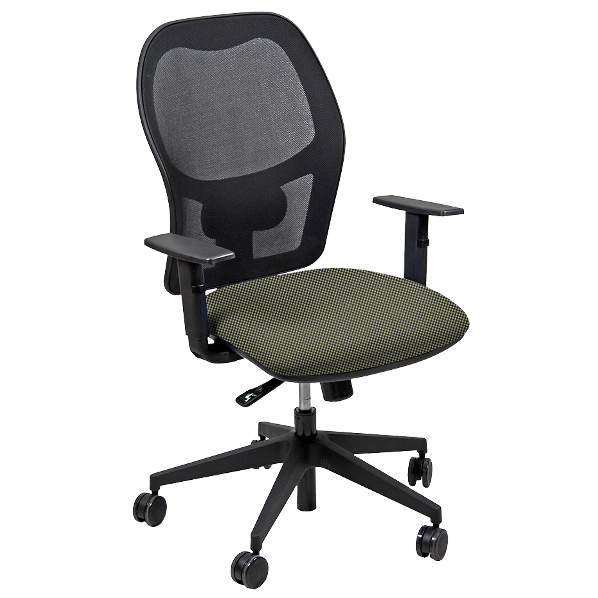 Seduta operativa girevole con elevazione a gas, meccanismo syncro, 4 blocchi anti shock e meccanismo a contatto permanente. Schienale con supporto lombare regolabile. Completa di braccioli regolabili. Rivestimento in tessuto "FASHION - Go Couture" 100% TREVIRA e certificazione di infiammabilità 1IM. Alt.tot: 102-113cm; Prof.tot: 68cm; Alt.schienale: 60cm; Largh.schienale: 48cm; Largh.sedile: 48cm; Prof.sedile: 46cm; Alt.sedile: 42-54cm.