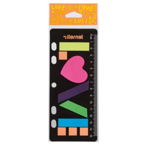 Detailled descriptionSEGNAPAGINA LOVE CON RIGHELLO100 segnapagina colorati in film plastico scrivibile, su cartoncino con righello e foratura universale. In blister appendibile.