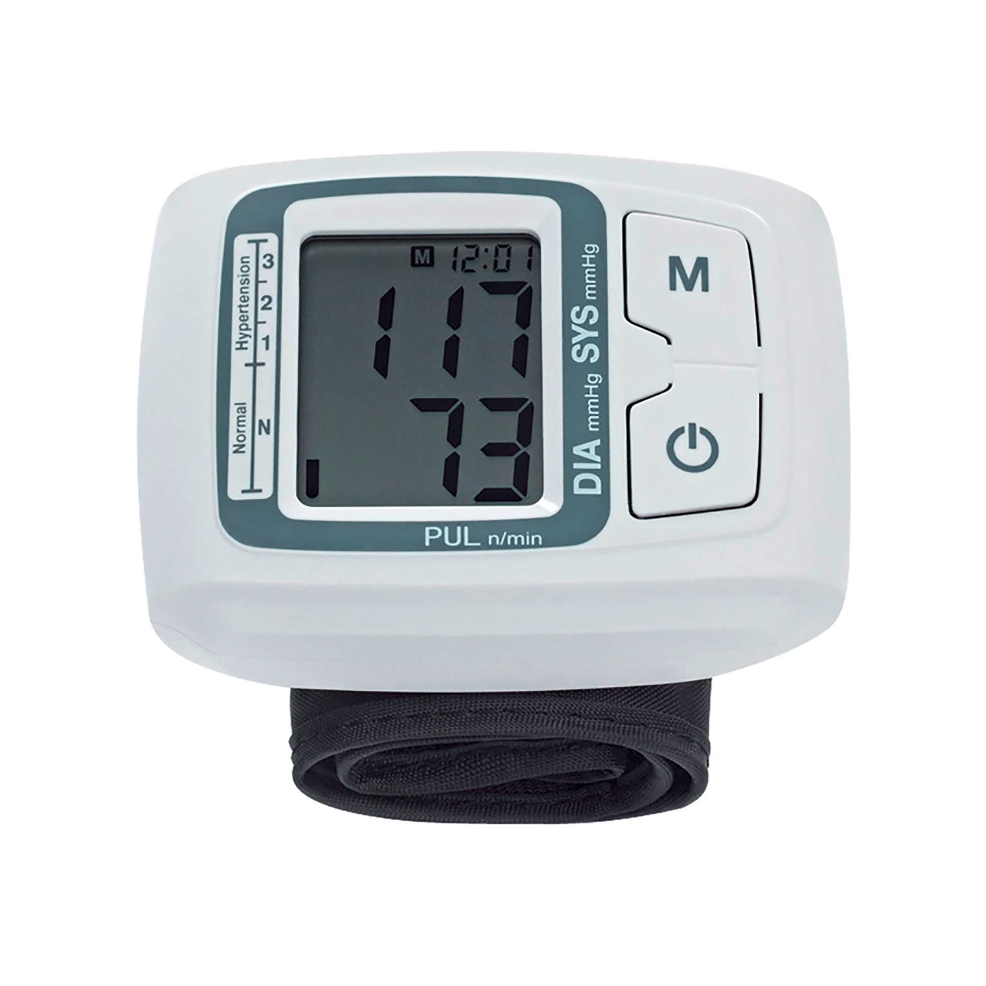 Detailled descriptionSfigmomanometro compatto, gonfiaggio controllato, multiutente.CaratteristicheMetodo di misurazione: oscillometrico, misurazioni e gonfiaggio automaticiPressione del sangue: 0-295 mmHg ± 3 mmHgGamma frequenza cardiaca: 40-180 battiti/min ± 5% di letturaGamma misurazioni: 30-280 mmHgAlimentazione: 2 batterie AAA 1.5 VDimensioni: 84 x 64 x 28 mmDisplay LCD: 31.9 x 39.6 mmPeso: 110 g (senza batterie)Bracciale da polso: per circonferenze da 14 a 19.5 cmTecnologia Smart Inflation per determinare automaticamente la pressione di gonfiaggioIndicatore di pressione OMSRilevatore di battito cardiaco irregolareMedia delle ultime 3 letture2 x 60 memorie, data e ora