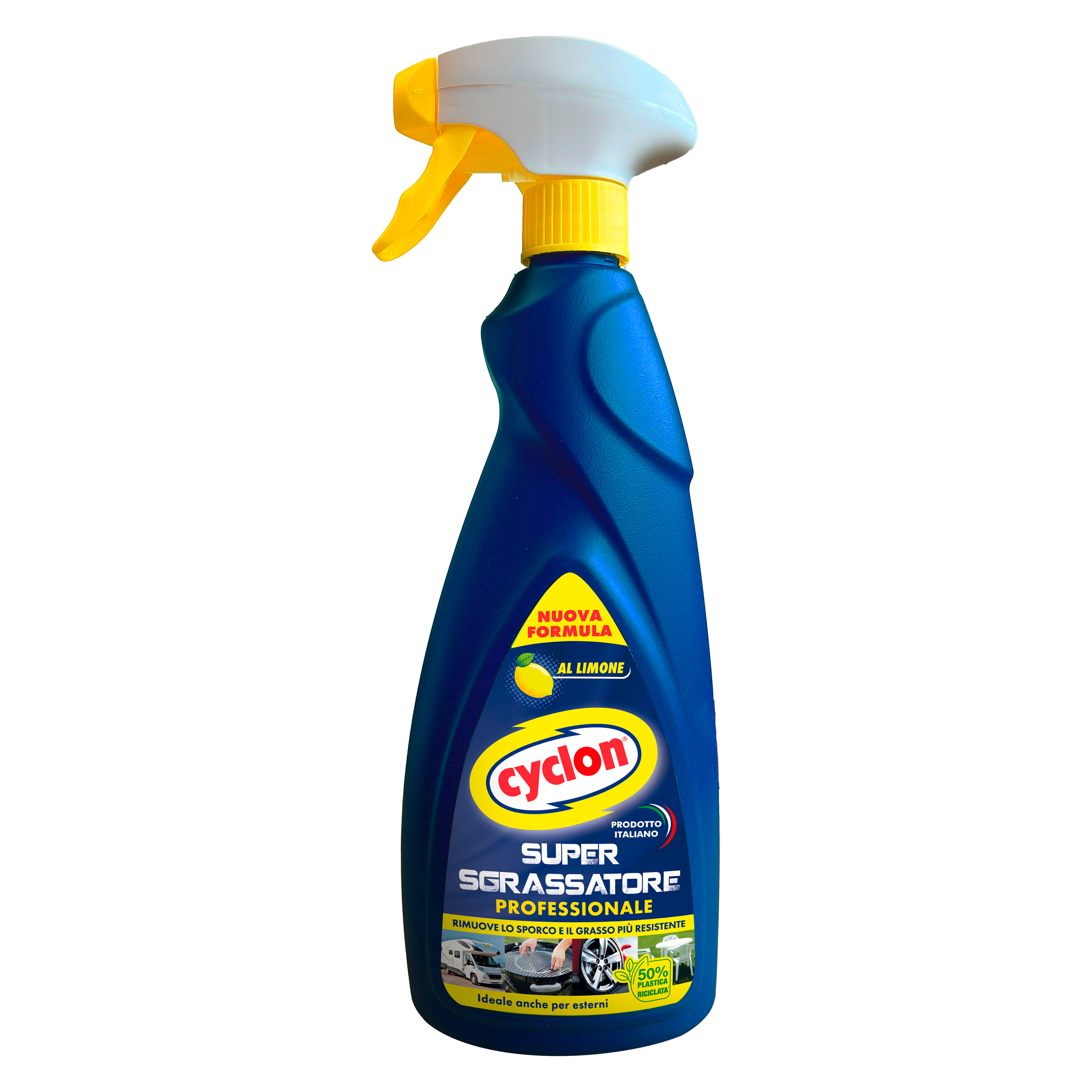 Cyclon Super Sgrassatore con la forza sgrassante del limone è` indicato per rimuovere efficacemente lo sporco e il grasso piu` resistente da ogni tipo di superficie e materiale.