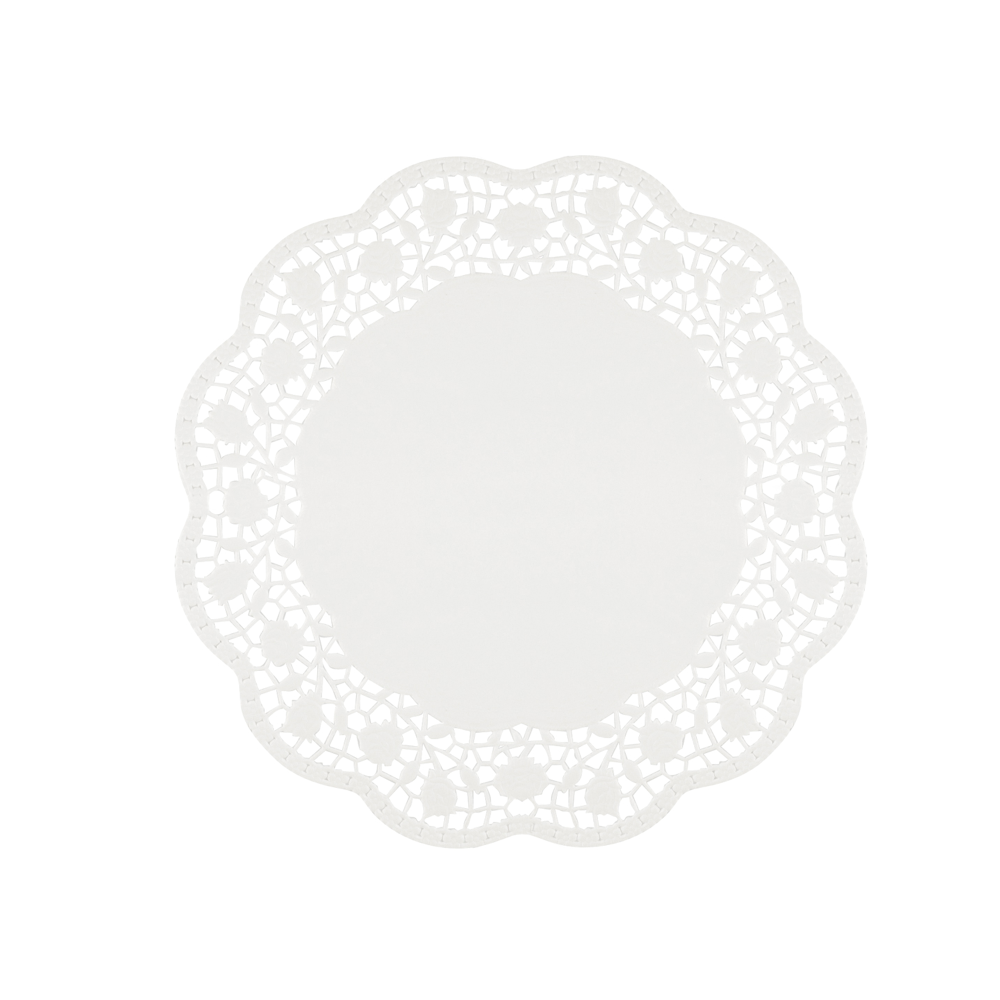 Confezione da 6 sottotorta decorativi, in carta bianca. Diametro: 27cm