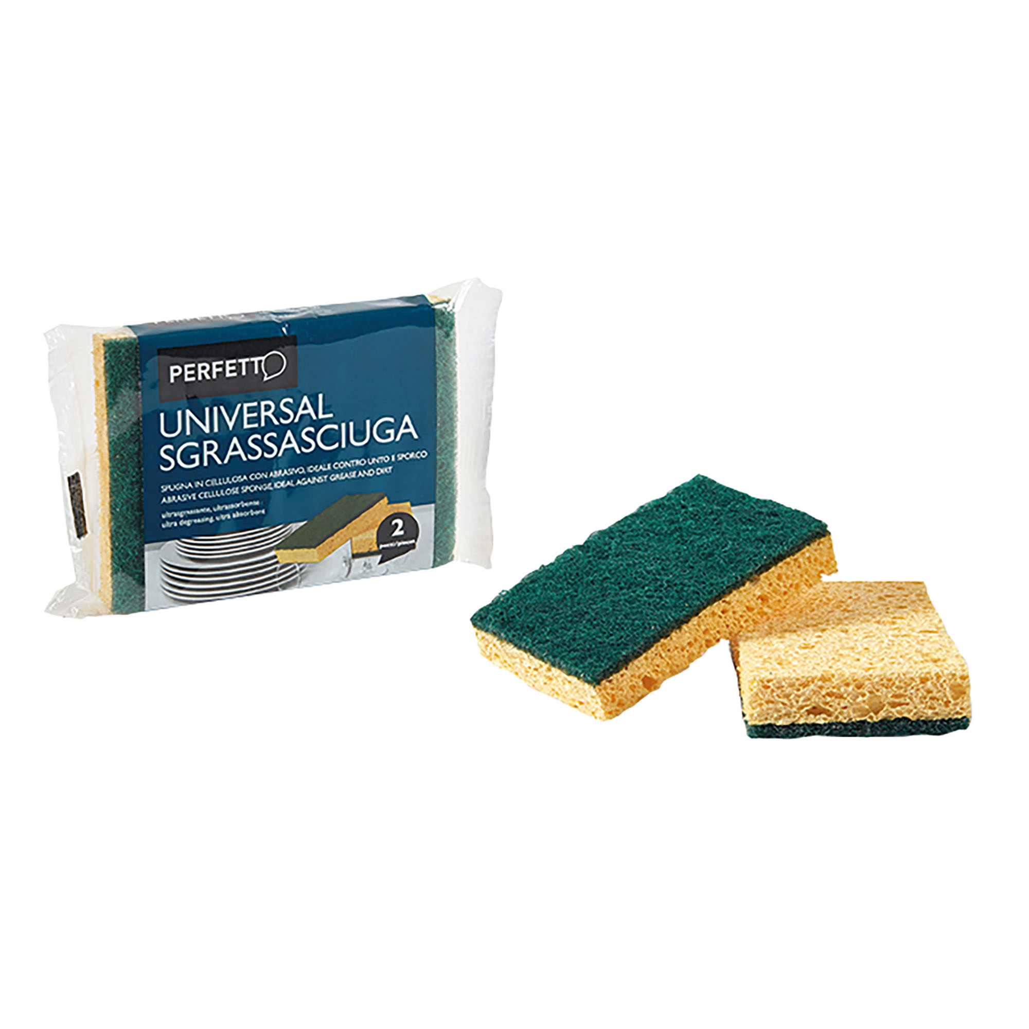 Detailled descriptionSpugna cellulosa + abrasivo “ a Sgrassasciuga“Composizione spugna: 100 % Cellulosa. Composizione Fibra: 100 % Poliestere.