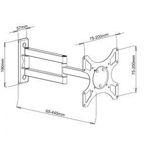 • Dimensioni: Placca a muro: 190 x 57 mm; Braccio: 65-445 mm.