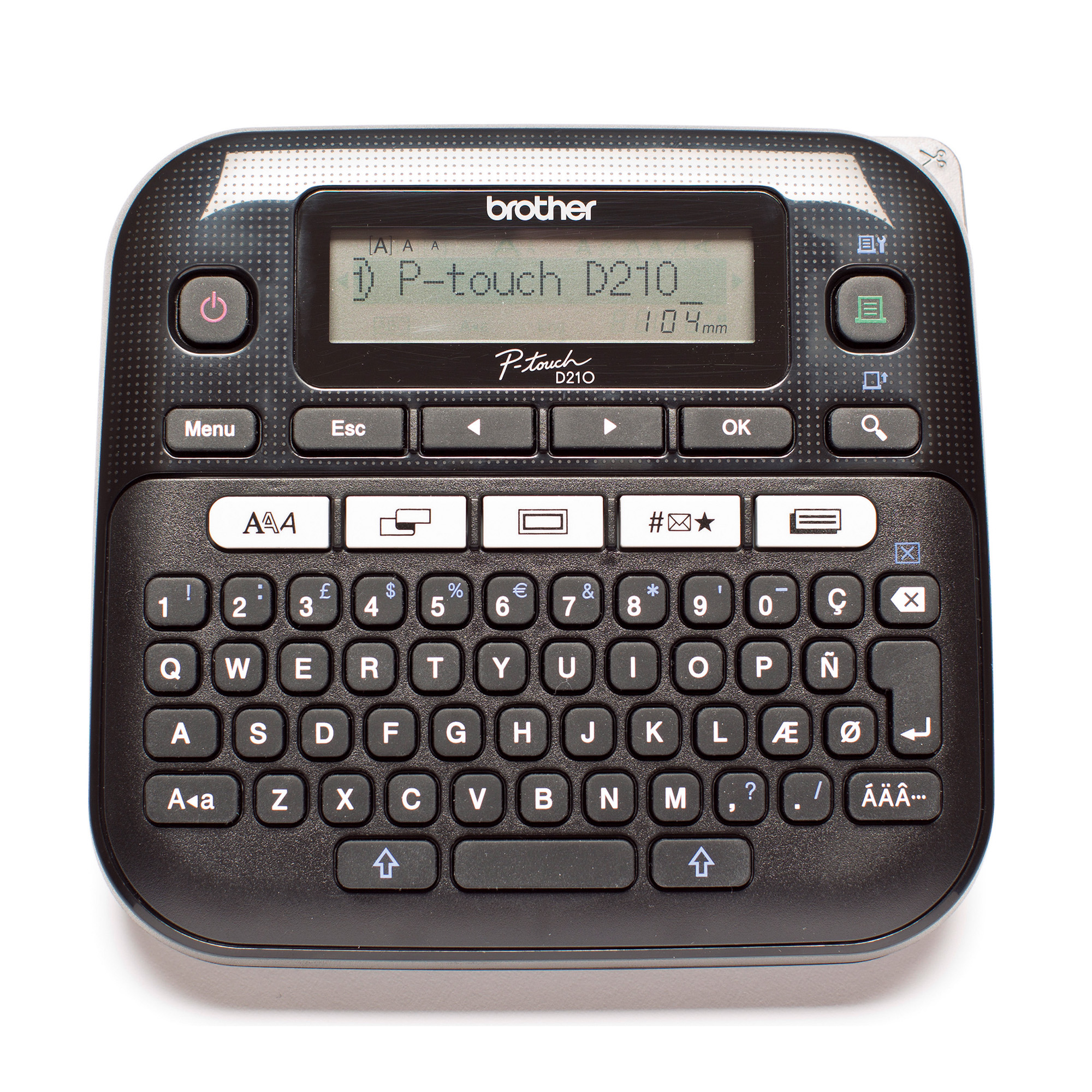 This desktop labelling machine has 10 models of "text labels" and 7 models of "labels Graphic" to create original labels. With a resolution of 180 x 180 dpi, with a print speed of 20 mm/second and in the colour black. With one touch function keys for easy use. Increased amount of fonts, frames and symbols than competitive models. It also includes a black on white tape white Tze series of 12 mm (4 m).