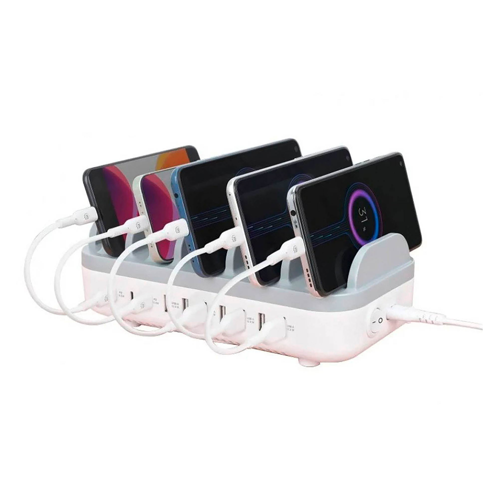 Detailled descriptionStazione di ricarica 10 porte USB 120W - Docking Station Potente stazione di ricarica 10-in-1 per telefoni, tablet, console di gioco portatili e altri dispositivi mobiliTre porte USB-C™ Power Delivery (PD 3.0) da 18 W ciascunaSette porte USB-A fino a 12 W / 2.4 A per portaRicarica simultanea fino a 10 dispositivi, ideale per famiglie e ufficiProtezione integrata da sovraccarico, sovracorrente e surriscaldamentoDieci alloggiamenti per dispositivi, larghi 15 mm ciascuno, per una ricarica ordinataPiedini in gomma antiscivolo per stabilità su superficiInterruttore di accensione/spegnimento a due poli e LED blu di indicazioneStruttura in plastica resistente e alimentatore interno inclusoCavo di alimentazione staccabile da 1,5 mDimensioni: 235 x 128 x 83 mm
