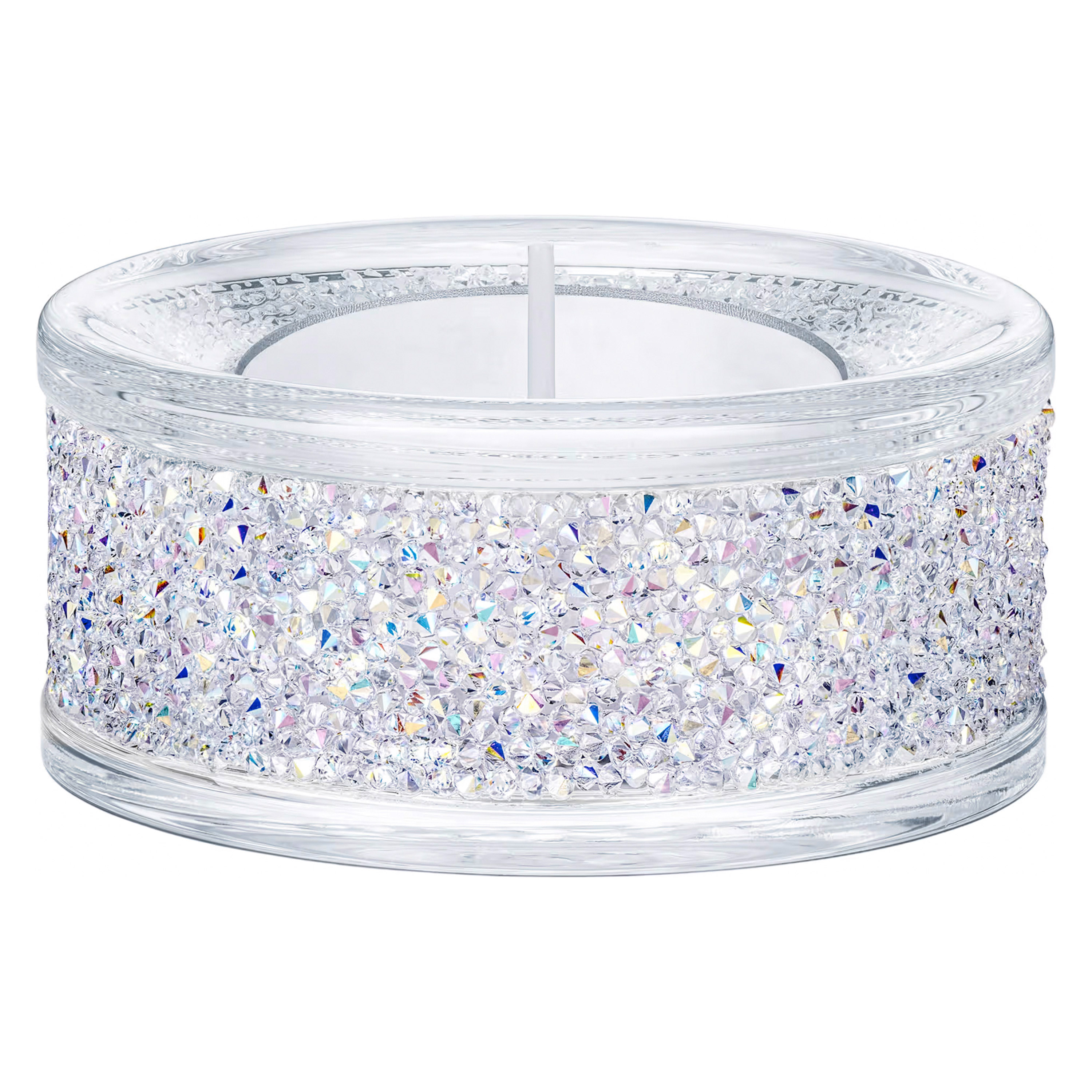 Il porta-candele è un raffinato oggetto d’arredo pensato per diffondere luce e atmosfera ovunque venga collocato. Realizzato interamente in cristallo Swarovski, presenta un design cilindrico trasparente e compatto (circa 67mm di diametro e 31,5mm di altezza), perfetto per contenere una tealighte creare un suggestivo gioco di riflessi. La superficie è impreziosita dalla tecnica Crystal Rock, con decine di piccoli cristalli applicati manualmente, che donano una lucentezza multicolore e vibrante non appena la luce si accende, trasformando ogni ambiente in uno spazio elegante e accogliente. Il risultato è un oggetto decorativo di piccole dimensioni ma d’impatto visivo notevole.