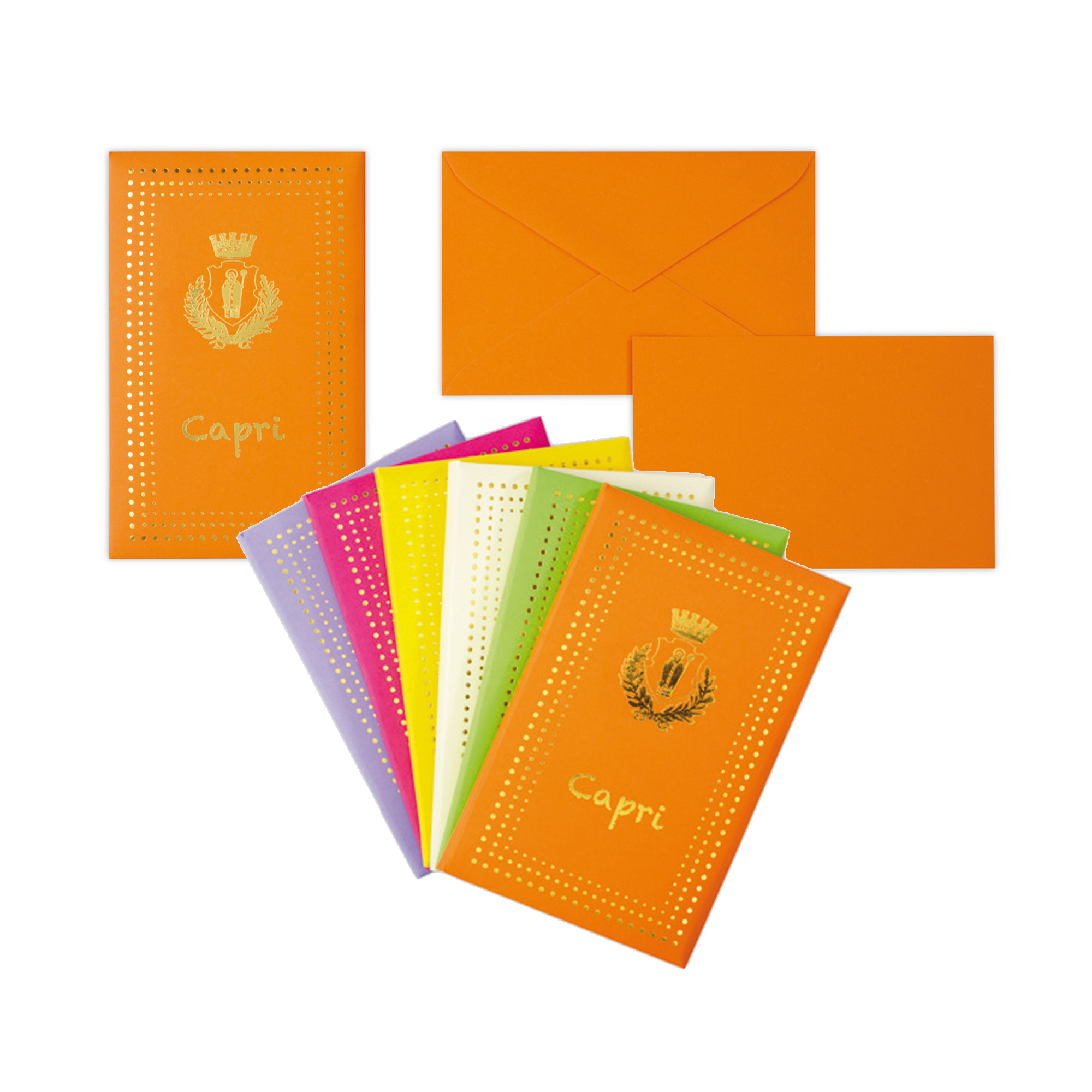 Detailled descriptionConfezioni CAPRI composte da 10 buste (90gr) + 10 biglietti (200gr) nel formato 90x140mm.