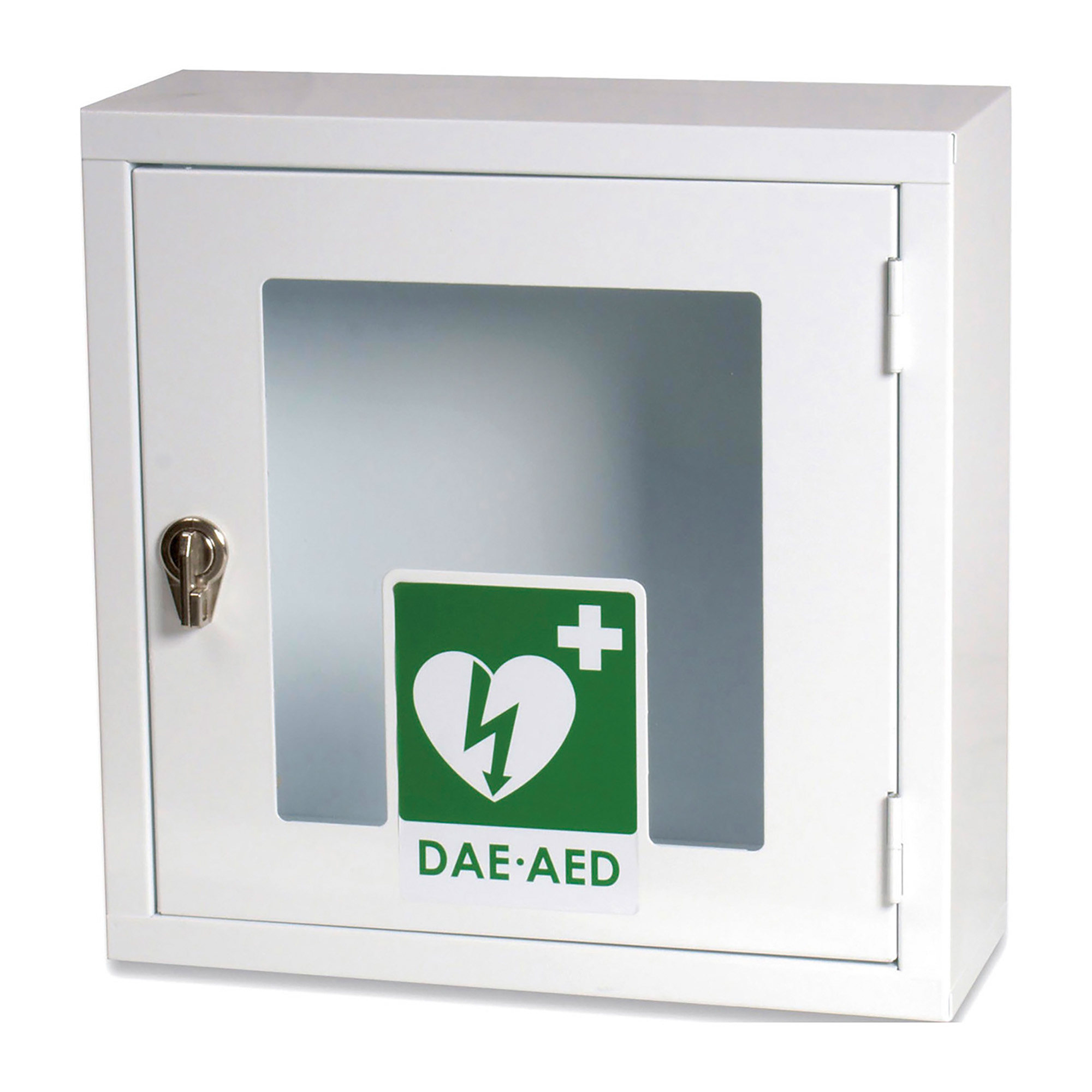 This Visio Defibrillator is made from galvanized carbon steel and is enameled by epoxy polyester white powder which is heated at 180 degrees making it perfect for outdoor use. Featuring a transparent door with an opening at 180 degrees with a galvanized strong pivot. The inspection window makes it easy for you to see the contents of the box and also for easy access during an emergency. Also featuring a strong nickel plated alloy closing device with a zinc coated S/S sealed lock ensuring contents are kept safe for emergencies.