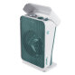 Termoventilatore con potenza massima 2000W e funzione oscillazione orizzontale. Grado di protezione IP21. Con due livelli di potenza e 3 Settaggi possibili: solo ventilazione; ventilazione e riscaldamento 1000W; ventilazione e riscaldamento 2000W. Dotato di termostato ambientale regolabile, timer ON/OFF programmabile 24 ore, spegnimento automatico in caso di surriscaldamento, spia LED di funzionamento, cover di sicurezza. Materiale: ABS. Colore: bianco e verde. Dimensioni: (H) 32,8 x (L) 21 x 13cm. Peso: 1,8kg.