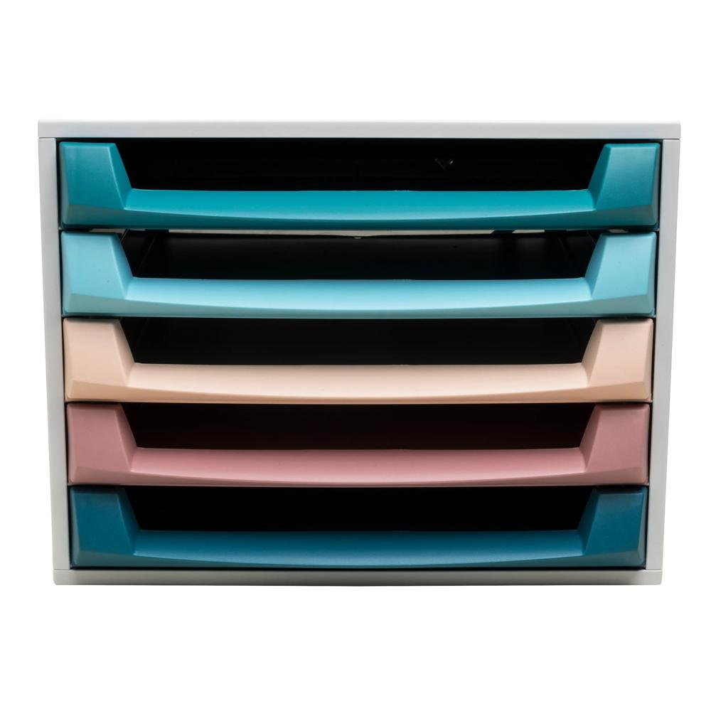 The Exacompta Box filing unit features 5 drawers for filing A4 and A4+ format documents, 24x32cm elasticated pockets or large format envelopes. This product is suitable for the workplace, home office or school.