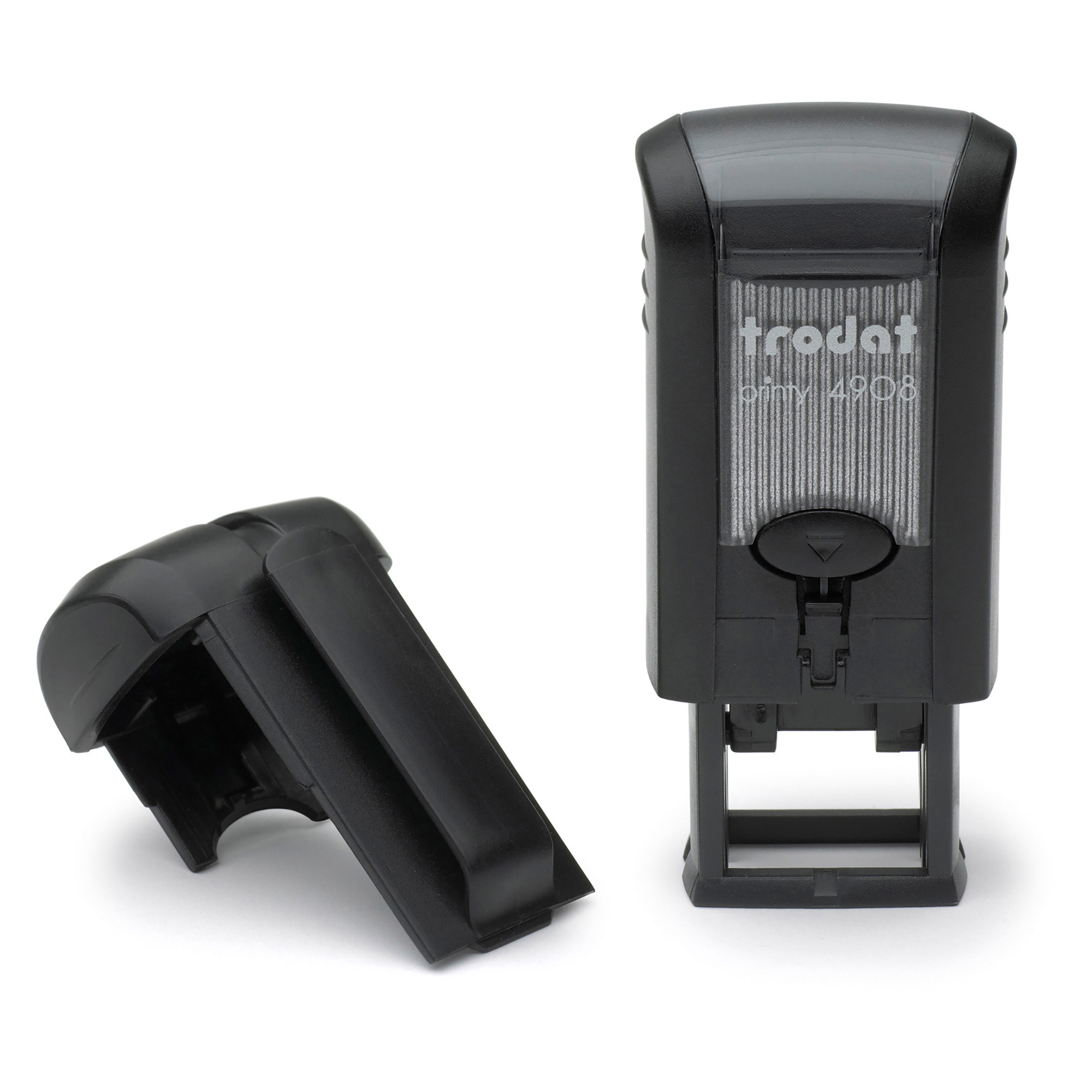 Il piccolo e leggero timbro in gomma auto-inchiostrante Trodat Printy 4908 sta comodamente in qualsiasi tasca. Con un'impronta della dimensione di 15 x 7 mm, è perfetto per brevi messaggi o piccoli loghi e icone.