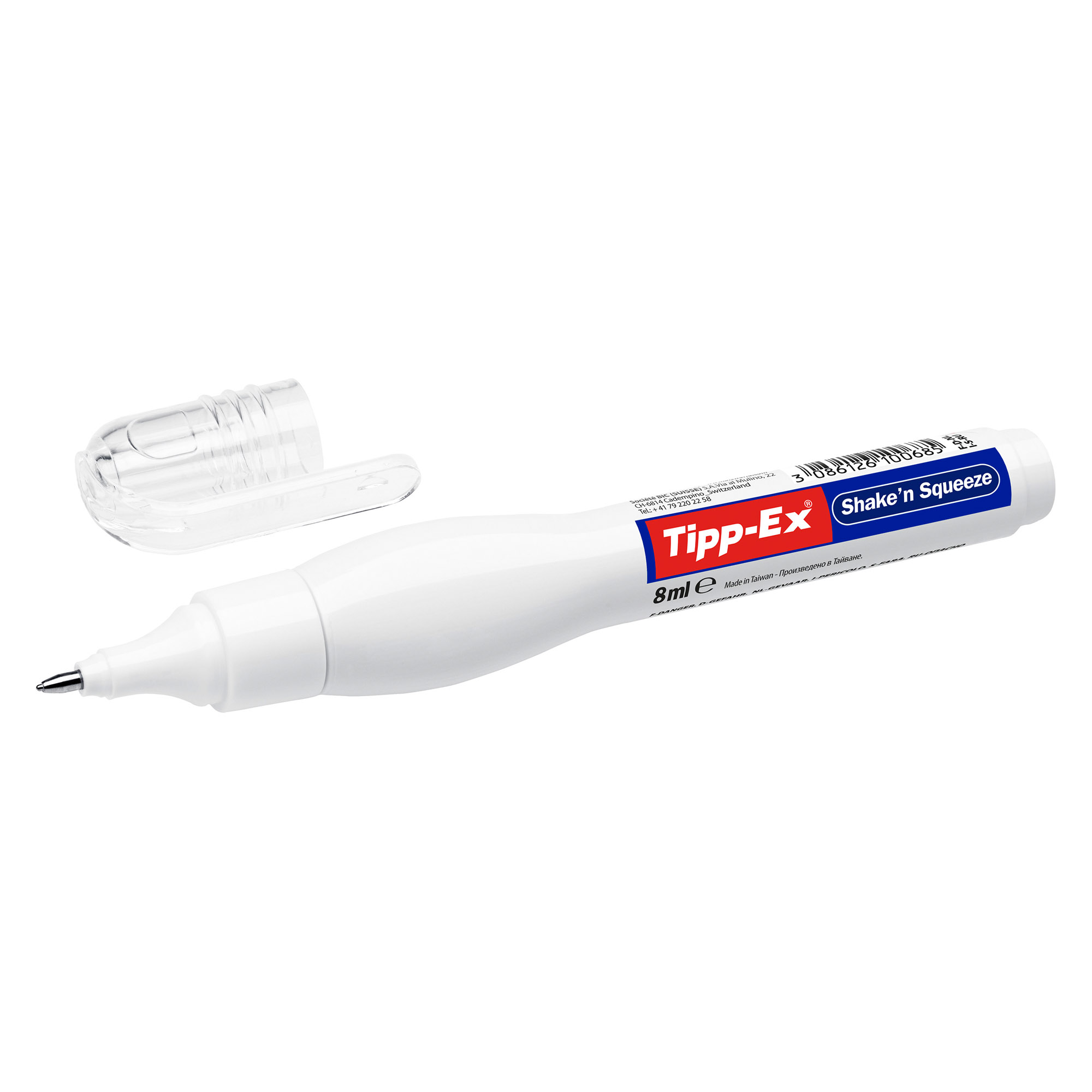 The fast drying fluid of this Tipp-Ex Shake 'n Squeeze correction pen can be easily controlled thanks to the squeezable body. This pen has 8 ml of liquid inside and is applied to your desired surface through the thin metal tip that brings you precision when you need it most.