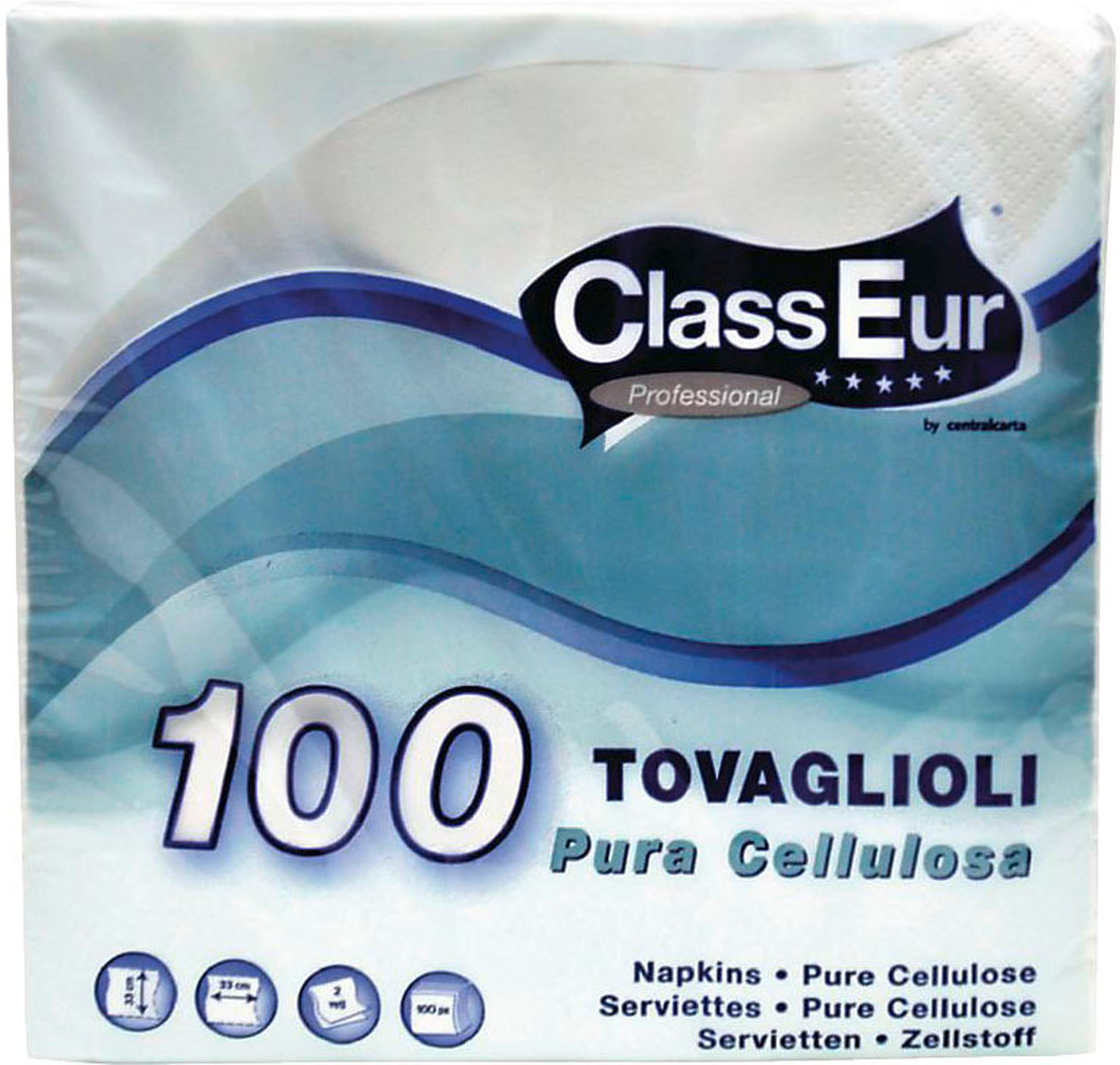 Detailled descriptionTovaglioli ideali per la tua tavola.Realizzati in pura cellulosa, doppio velo.Idonei al contatto con gli alimenti.Formato 33 x 33 cm.