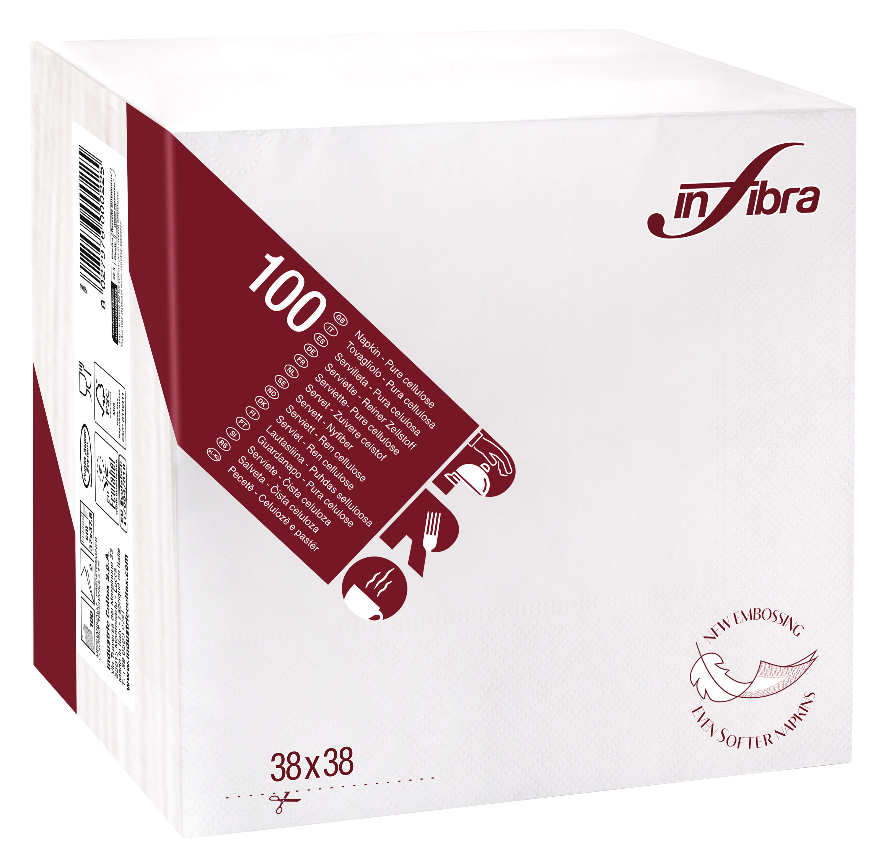 Cartone da 18 confezioni da 100 per un totale di 1800 tovaglioli.