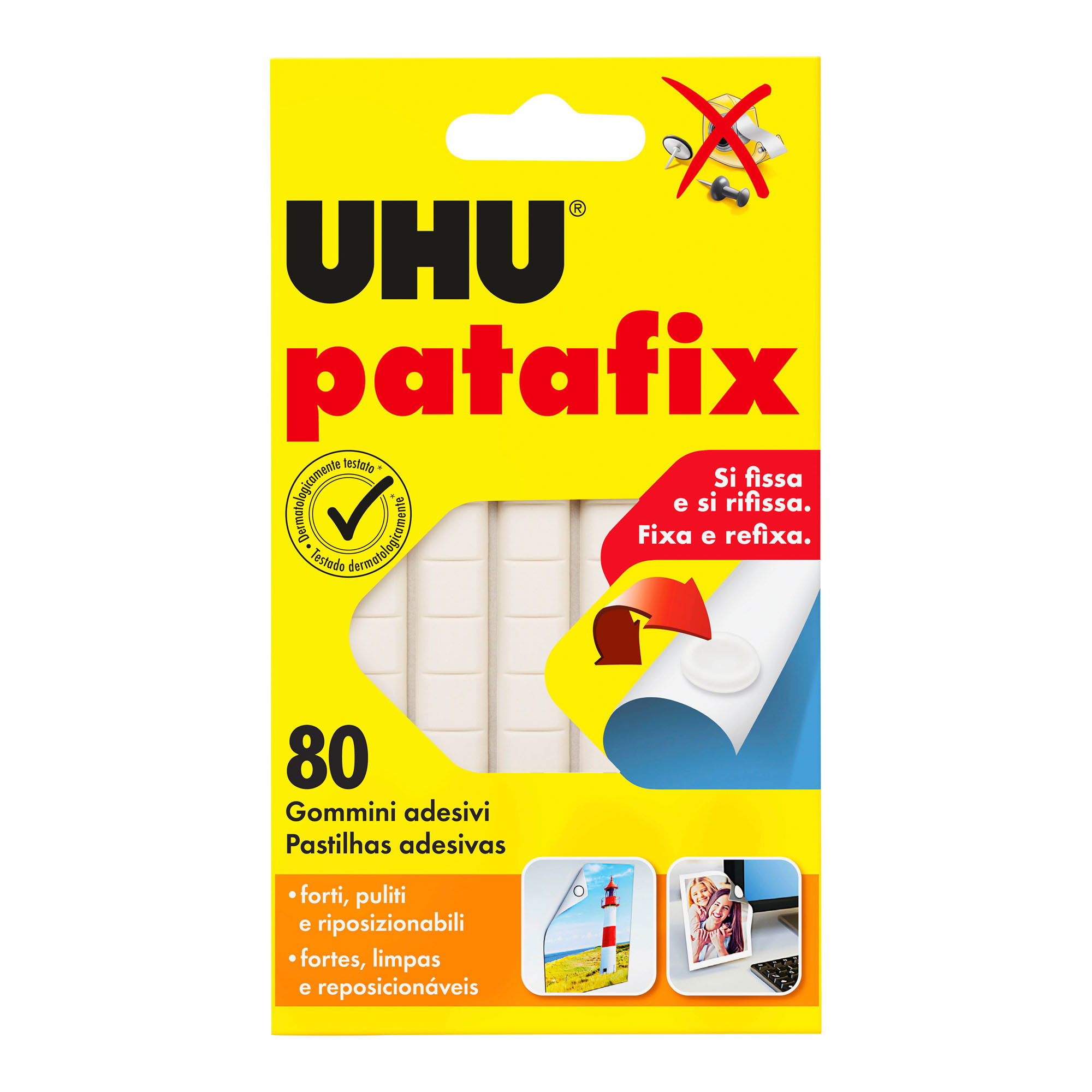 UHU Patafix è la soluzione forte e intelligente per fissare in modo invisibile senza bisogno di colla, puntine e nastro adesivo.