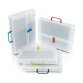 Maniglia e chiusura in plastica colorata nelle varianti azzurro, rosso, giallo e nero (colori assortiti nell'imballo).