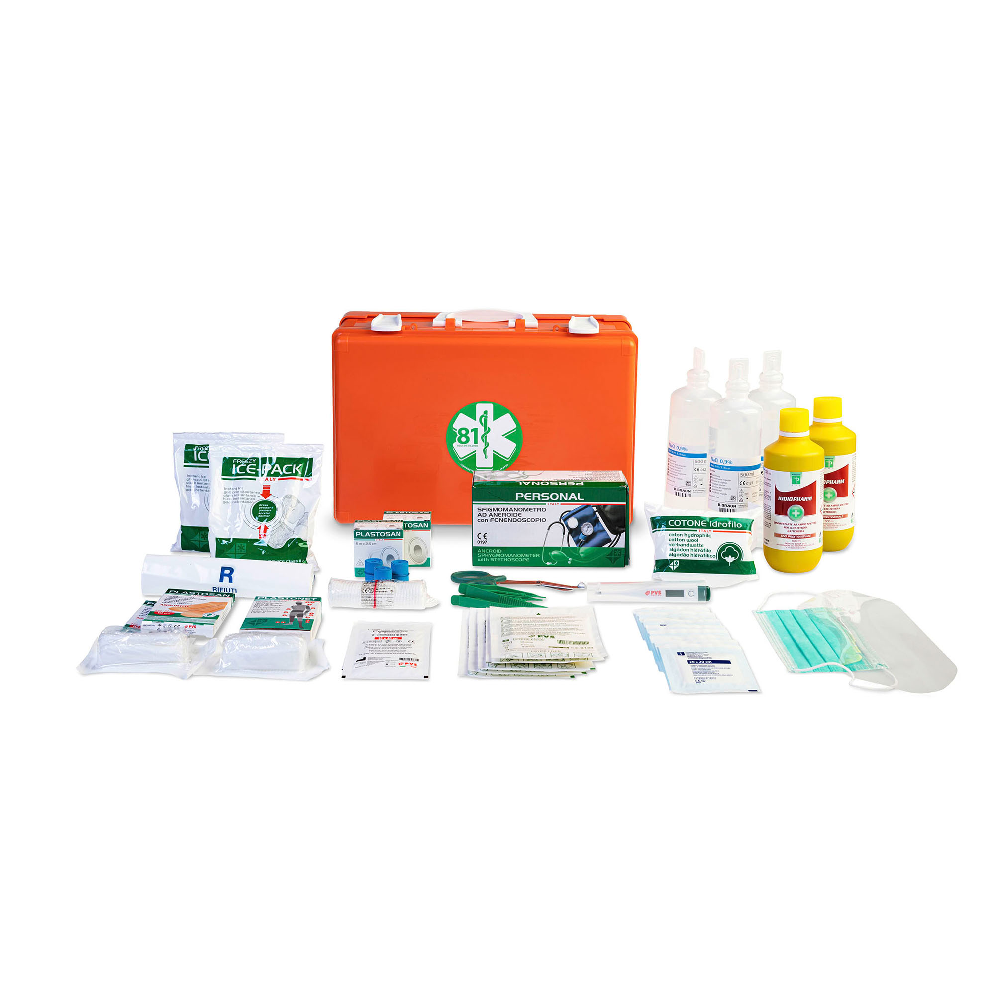 Contenuto a norma dell’ALLEGATO 1 D.M. 388 del 15 luglio 2003 (art. 1) G.U. 27 del 03 febbraio 2004 D.L. 81 del 09 aprile 2008 art. 45 I prodotti definiti dispositivi medici, contenuti nel kit pronto soccorso sono conformi alla direttiva CE 93/42 al DL 24.2.97 e al 2007/47/CEE.