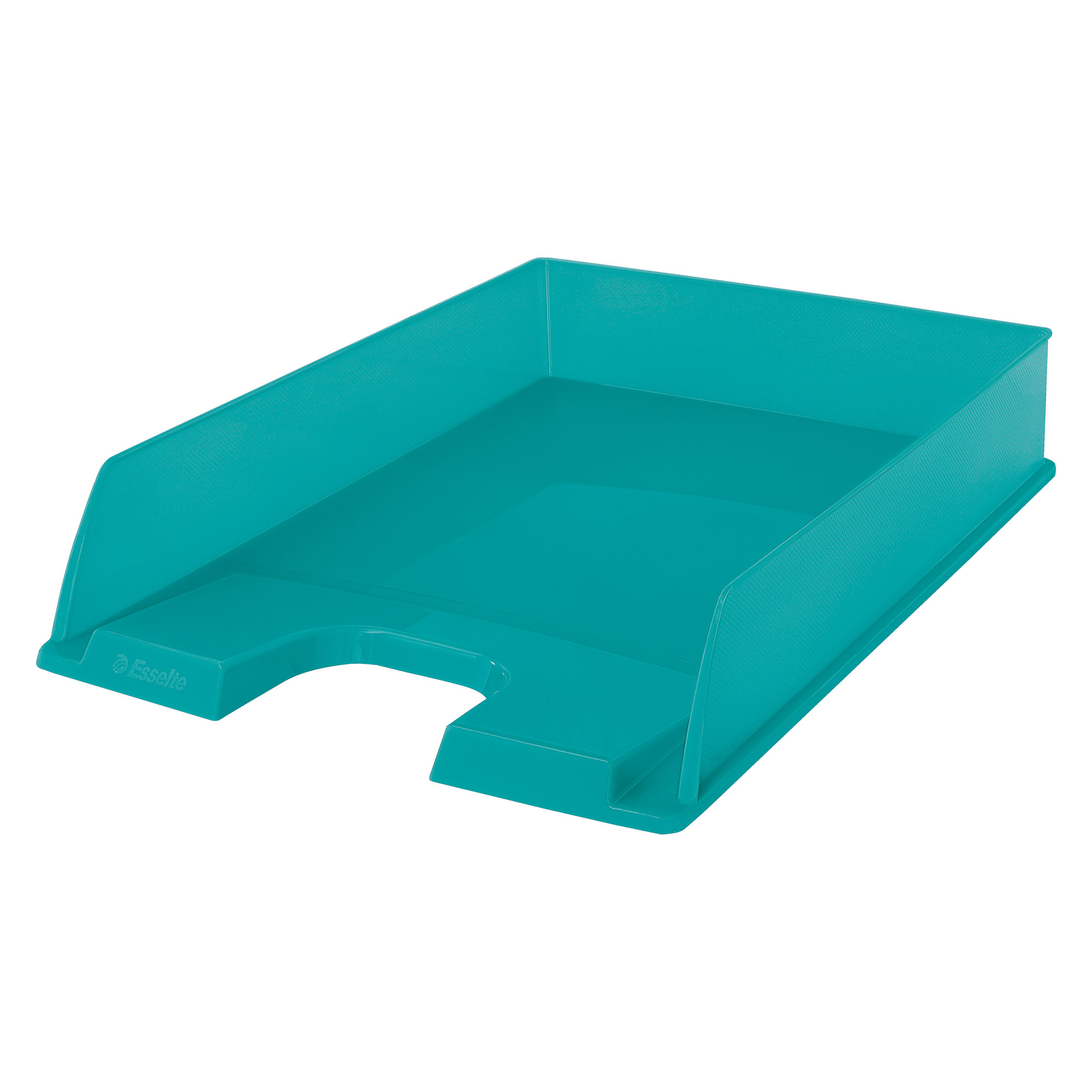 Stylish letter tray in translucent blue. Holds all documents up to 24 x 32cm in size. Large front cut-out section for easy retrieval of documents