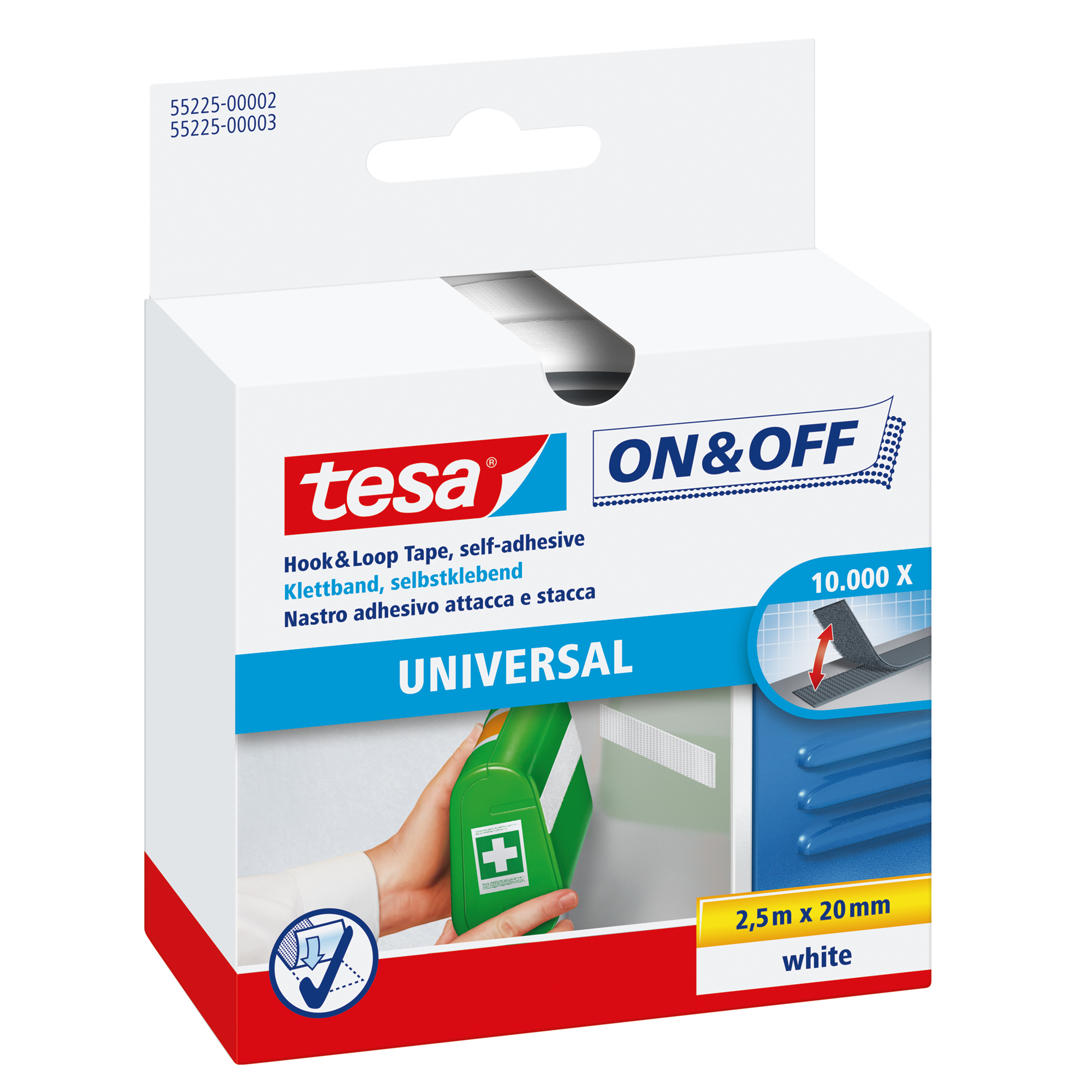 tesa® On & Off General Purpose Stick-on Tape is a versatile hook & loop tape that you will quickly appreciate as practical home and office organizer. It can be used to attach any lightweight object to a wall or any other flat surface while leaving you with the option to remove and reattach it as often as you like. Use it to attach a first aid kit to the wall or keep any kitchen utensils on display for easy reach.