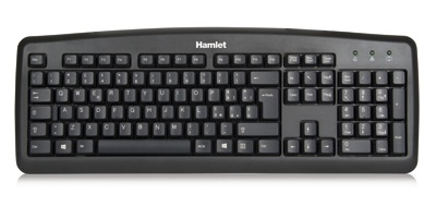Hamlet Black Soft Touch, the professional silent keyboard with slim design. It's designed for comfortable and long term use thanks to its key's hi-tech mechanical and laser printing. Hamlet keyboard has a special support which allows lock up position and right inclination. Its USB Plug and Play interface is compatible with any computer and Notebook. No drivers needed.