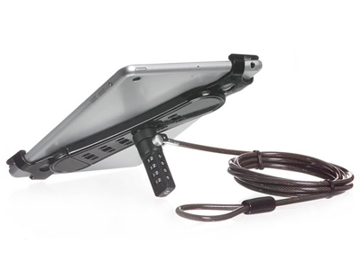 Hamlet Tablet Security Lock is a security cable with universal anti-theft frame for Tablet PC 8-11". A sturdy locking device featuring a high quality reinforced steel cable for maximum protection against theft. The 200 cm cable is equipped with a 4-digit combination lock.