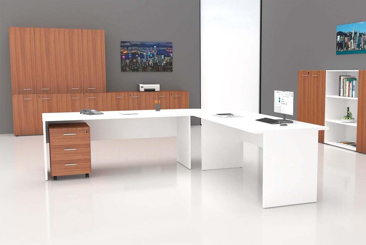 La linea Siena dispone di 3 strutture: gamba a pannello, a T e a ponte realizzato con pannello ecologico Made in Italy.
