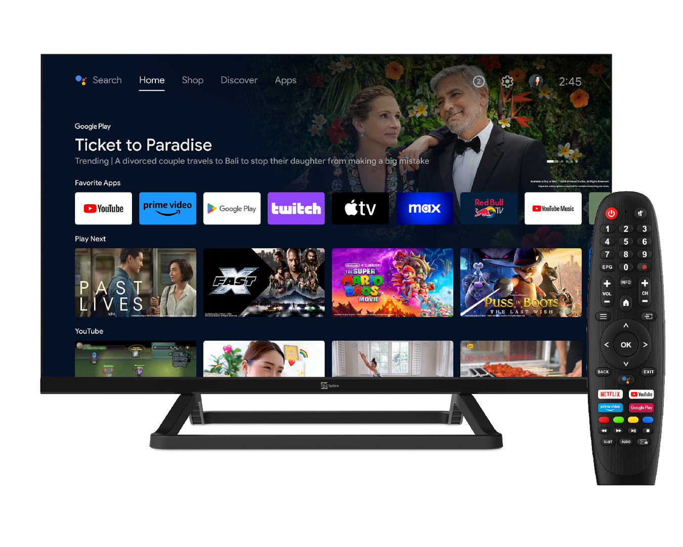TELE System presenta TS24FLSMG14 il TV certificato Android TV™ che coniuga l’universo smart ai contenuti televisivi terrestri e satellitari in tecnologia digitale DVB-T2/S2 HEVC.
