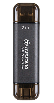 Descrizione dettagliataTranscend TS2TESD310C. Capacità SSD: 2 TB. Connettore USB: Da USB tipo A a USB tipo C, Versione USB: 3.2 Gen 2 (3.1 Gen 2). Velocità di lettura: 1050 MB/s, Velocità di scrittura: 950 MB/s. Colore del prodotto: Nero