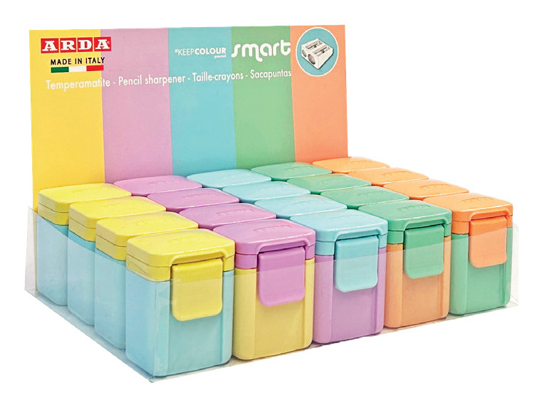 Descrizione dettagliataARDA TE804PSC. Tipo: Temperamatite manuale, Colore del prodotto: Colori assortiti, Diametro della matita (max): 1,1 cm. Tipo di imballo: Scatola di esposizione. Quantità per pacco: 20 pz. Paese di origine: Italia