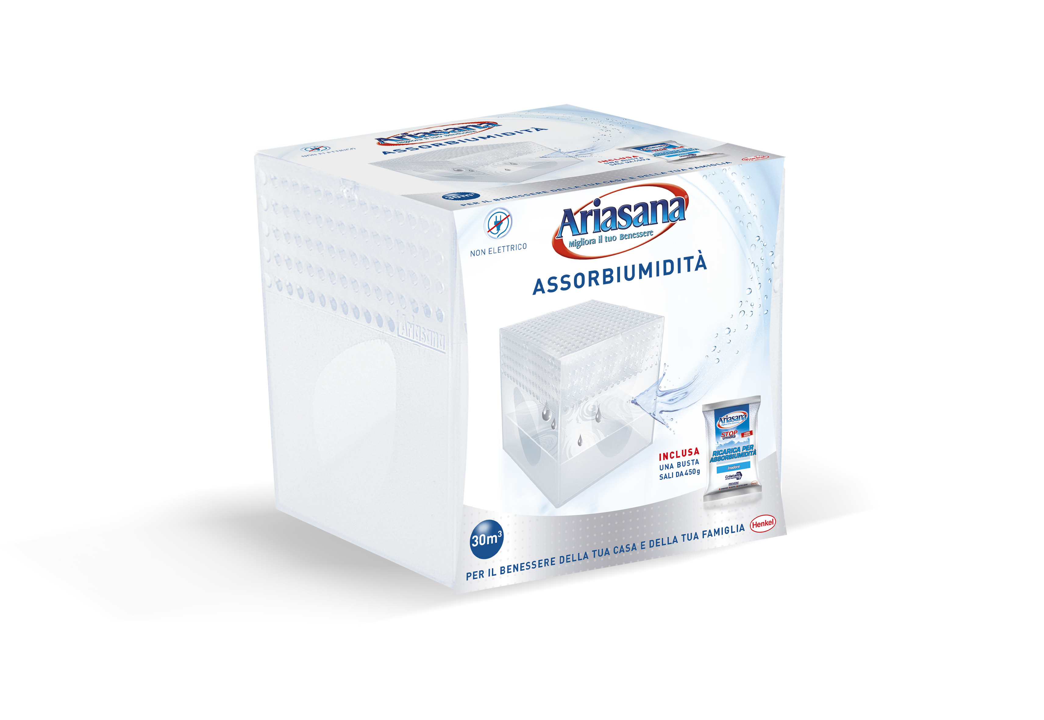 Risolvere il problema dell’umidità in eccesso può diventare una vera e propria sfida, soprattutto in ambienti di ampia quadratura. Ariasana Kit Mini risolve egregiamente il problema, essendo indicato per spazi fino a 30 m². I suoi cristalli attivi superassorbenti sono testati in laboratorio per garantire la massima resa, riuscendo ad assorbire l’umidità fino a 2 mesi consecutivi (a seconda dell’umidità della stanza e della temperatura). Per questo motivo il deumidificatore portatile è ottimoanche per il garage, il camper, la cantina o la seconda casa. Ottimo in situazioni estreme, Ariasana Kit Mini ovviamente è l’alleato ottimale anche in bagno o in camera da letto. Il funzionamento è molto semplice, e richiede esclusivamente la busta da 450gr di ricarica in Sali inclusa nella confezione.