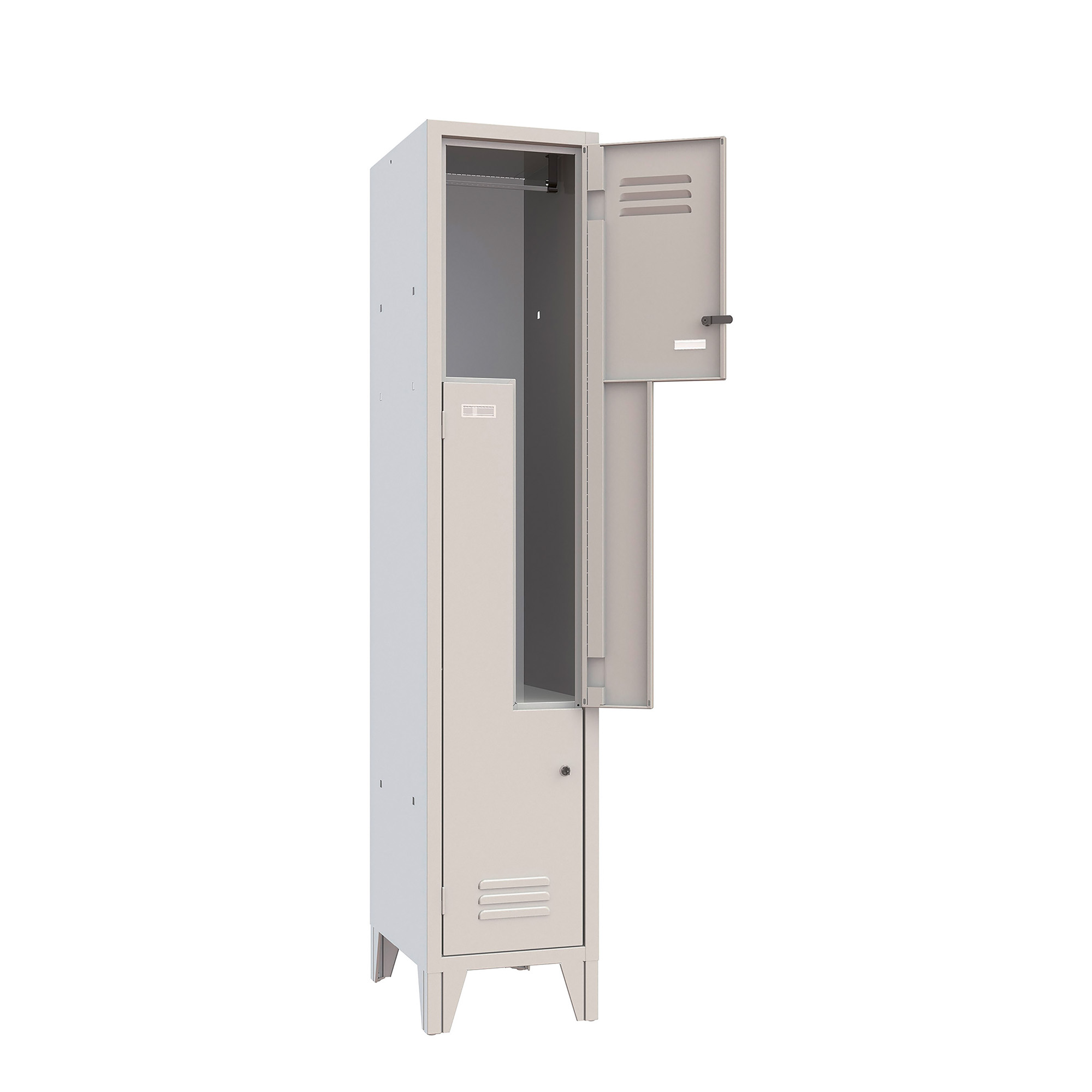 Questo armadio spogliatoio offre la possibilità di riporre in tutta sicurezza e in modo ordinato abiti ed oggetti.