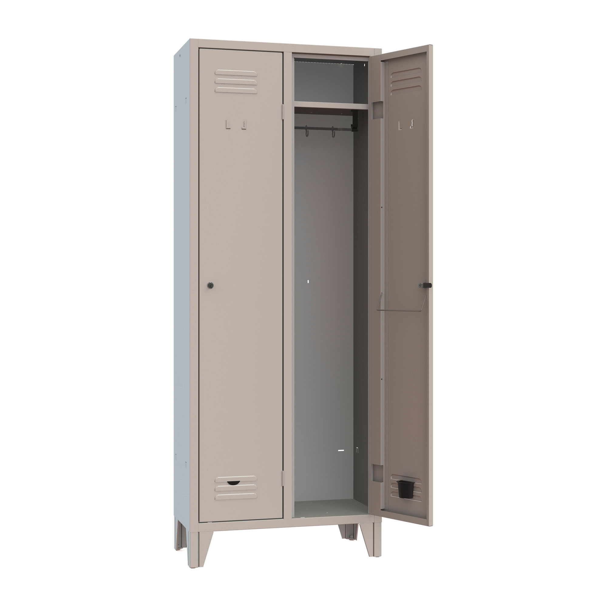 Questo armadio spogliatoio offre la possibilità di riporre in tutta sicurezza e in modo ordinato abiti ed oggetti.